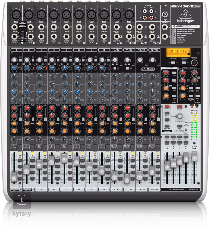 Xenyx QX2442USB je mixážny pult, ktorý ponúka 24 vstupov, 4/2 zbernicu, vstavaný kompresor, multiefekty Klark Teknik, 4 podskupiny, možnosť integrácie do bezdrôtového systému Behringer a USB rozhranie pre nahrávanie mixu priamo do počítača.