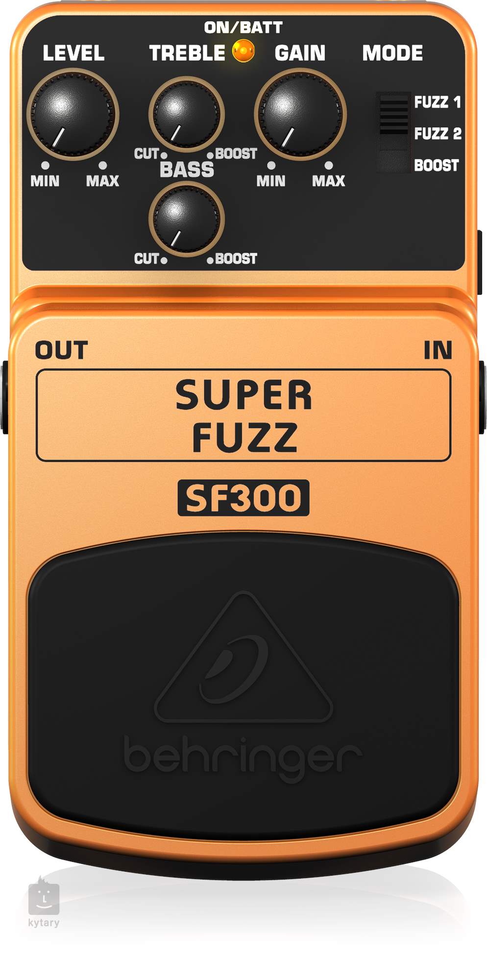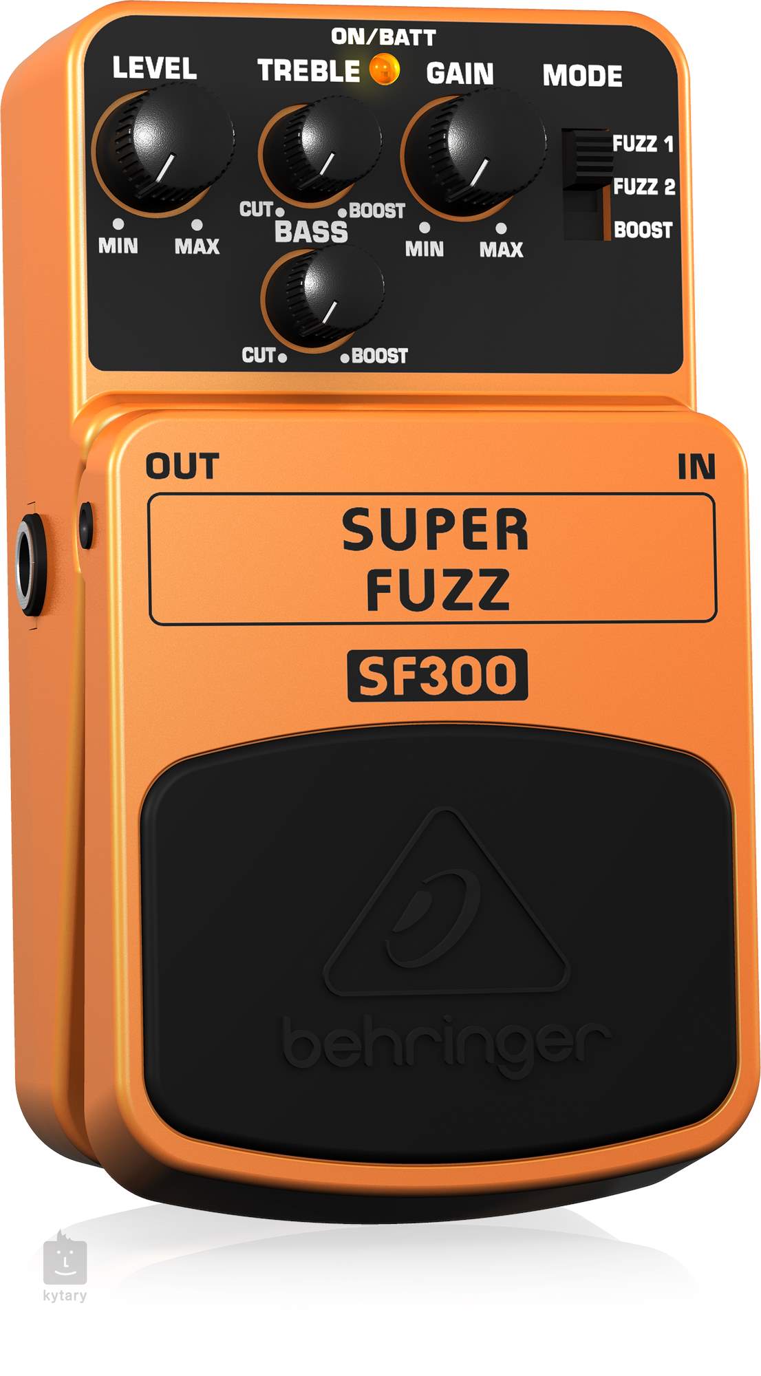 Kompaktný gitarový efekt Behringer SF300 Super Fuzz ponúka dva mody fuzz a čistý gain boost v jednom šasi. Môžete si tak vybrať medzi klasickým zvukom efektu fuzz s výraznejším profilom v stredoch, plnším hutnejším fuzzom s orezanými stredmi alebo čisto boostovým efektom, kde je ovládač Level obídený a Gain určuje množstvo gainu. Nastavenie ovládačov v prvých dvoch režimoch určuje výstupnú hlasitosť, EQ a intenzitu skreslenia fuzzu. Jednoznačným plusom, ako pri všetkých produktoch Behringer, je pomer cena/výkon.