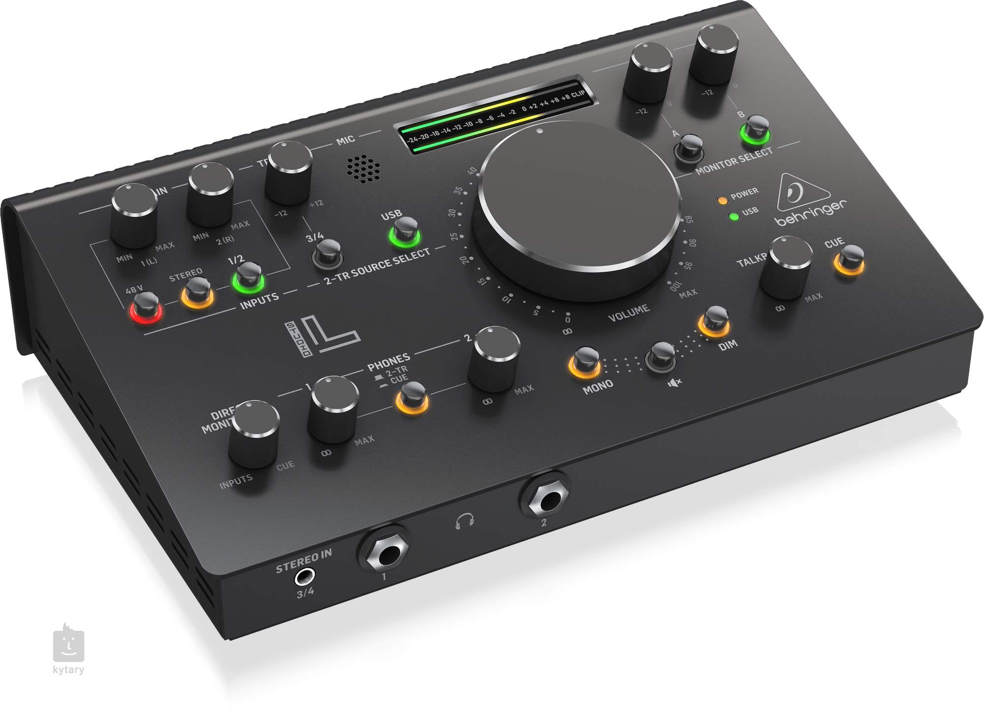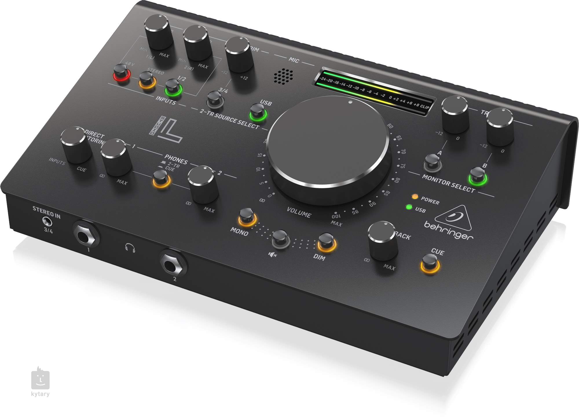 Behringer Studio L je profesionálne štúdiové monitorovacie riadiace centrum, ktoré kombinuje vysokokvalitné 2x2 USB audio rozhranie s rozlíšením 24 bitov/192 kHz a špičkové predzosilňovače Midas známe svojou čistotou, vysokým ziskom a veľmi nízkym šumom. Tieto komponenty zaručujú krištáľovo čistú signálovú cestu vhodnú na akýkoľvek typ nahrávania - od vokálov až po nástroje.