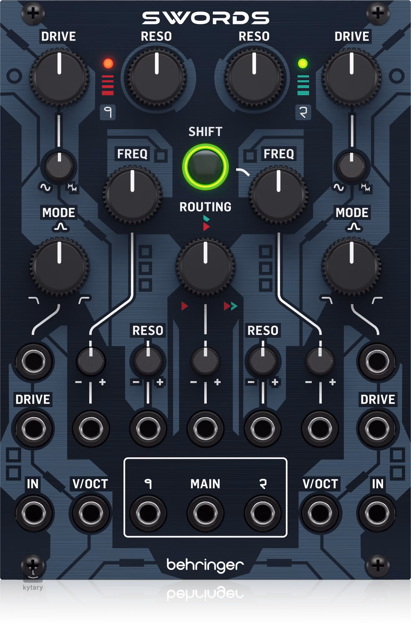 Swords je duálny analógový viacrežimový filter doplnený o ovládací obvod, ktorý riadi veľkosť zosilnenia a skreslenia vstupného signálu, ktoré možno ďalej meniť od jemného orezania až po dvojstupňové skladanie vlny.