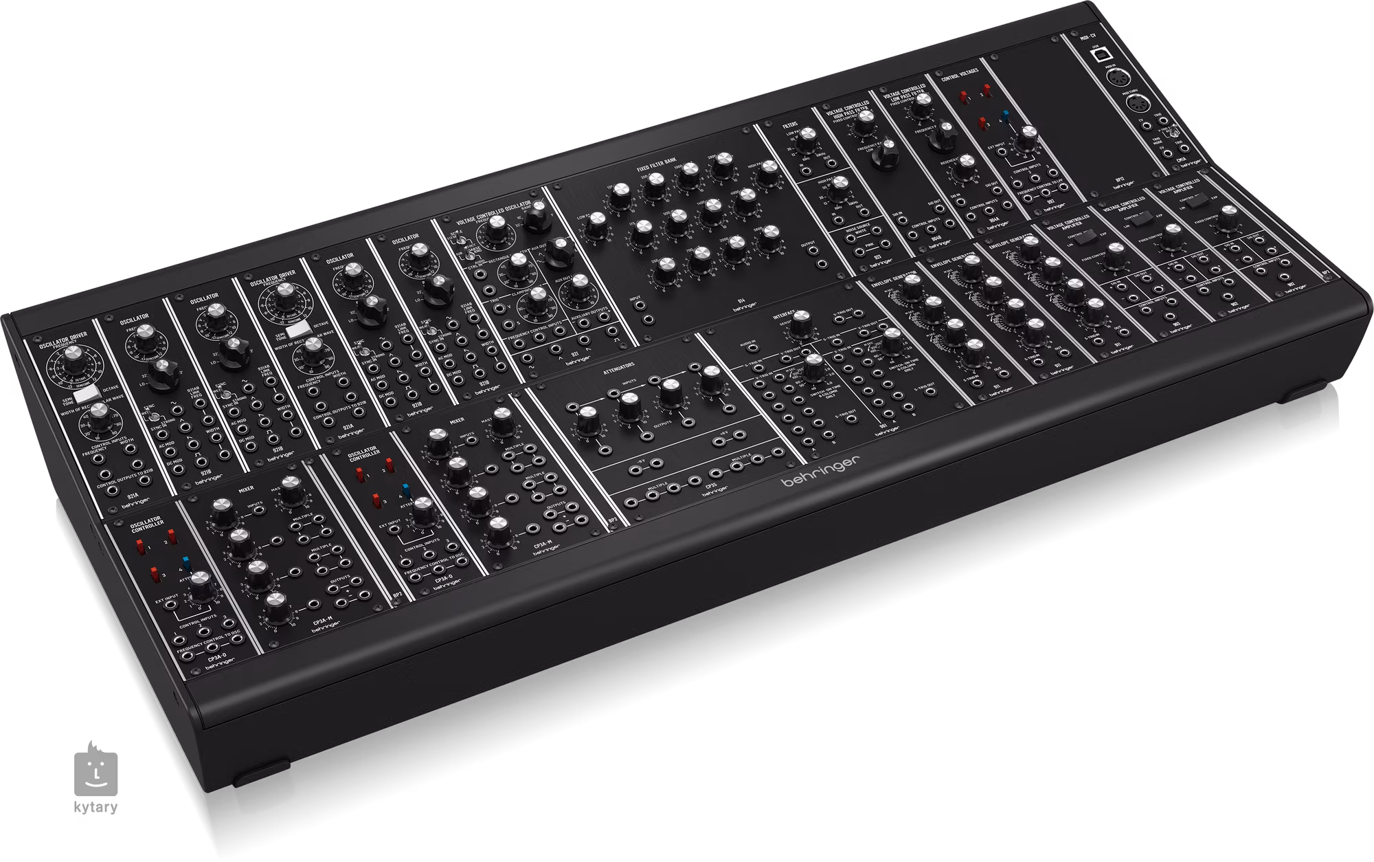 Súčasťou balenia je: Vopred zostavený modulárny syntetizátor "System 35" s 25 vintage znejúcimi modulmi zo 70. rokov 20. storočia 2x 921A OSCILLATOR DRIVER so 4x 921B VCO a 1x 921 VCO, ktoré vám poskytnú 5 plnohodnotných hlasov 1x 914 FIXED FILTER BANK s 12 aktívnymi pásmovými filtrami od 125 Hz do 5,6 kHz a LP/HP filtrami 1x moduly 923 FILTERS so 6 dB nízkofrekvenčným a vysokofrekvenčným priepustným pásmom a zdrojmi bieleho/ružového šumu 1x 904B VOLTAGE CONTROLLED UPPER PASS FILTER a 1x 904A VOLTAGE CONTROLLED LOWER PASS FILTER 1x 992 VOLTAGE CONTROLLED modul umožňuje miešanie a CV prepínanie s 1 inverzným atenuátorom 2x CP3A-modul umožňuje CV mixovanie a prepínanie pre VCO s 1 atenuátorom 2x CP3A-M 4-vstupový mix s master úrovňou, 4 výstupmi a 2 sadami 4 násobičov 1x modul CP35 ATTENUATORS so 4 prepojenými atenuátormi, 2 sadami 4 násobičov a referenčným napätím 1x modul 961 INTERFACE konvertuje viacnásobné V-trig na S-trig pre kompatibilitu s inými modulmi Eurorack 3x 911 ENVELOPE GENERATORS so vstupmi S-trig a výstupmi CV 3x 902 VOLTAGE-DRIVEN AMPLIFIER s 3 sumujúcimi CV vstupmi a duálnymi audio vstupmi a výstupmi 1x BP12 a 3x BP2 prázdne panely pre celkový rozširujúci priestor 18 HP 1x CM1A MIDI-to-CV prevodník umožňuje ovládanie prostredníctvom MIDI klávesov alebo DAW, V-trig alebo S-trig výstupy 1x skriňa EURORACK GO vrátane PSU