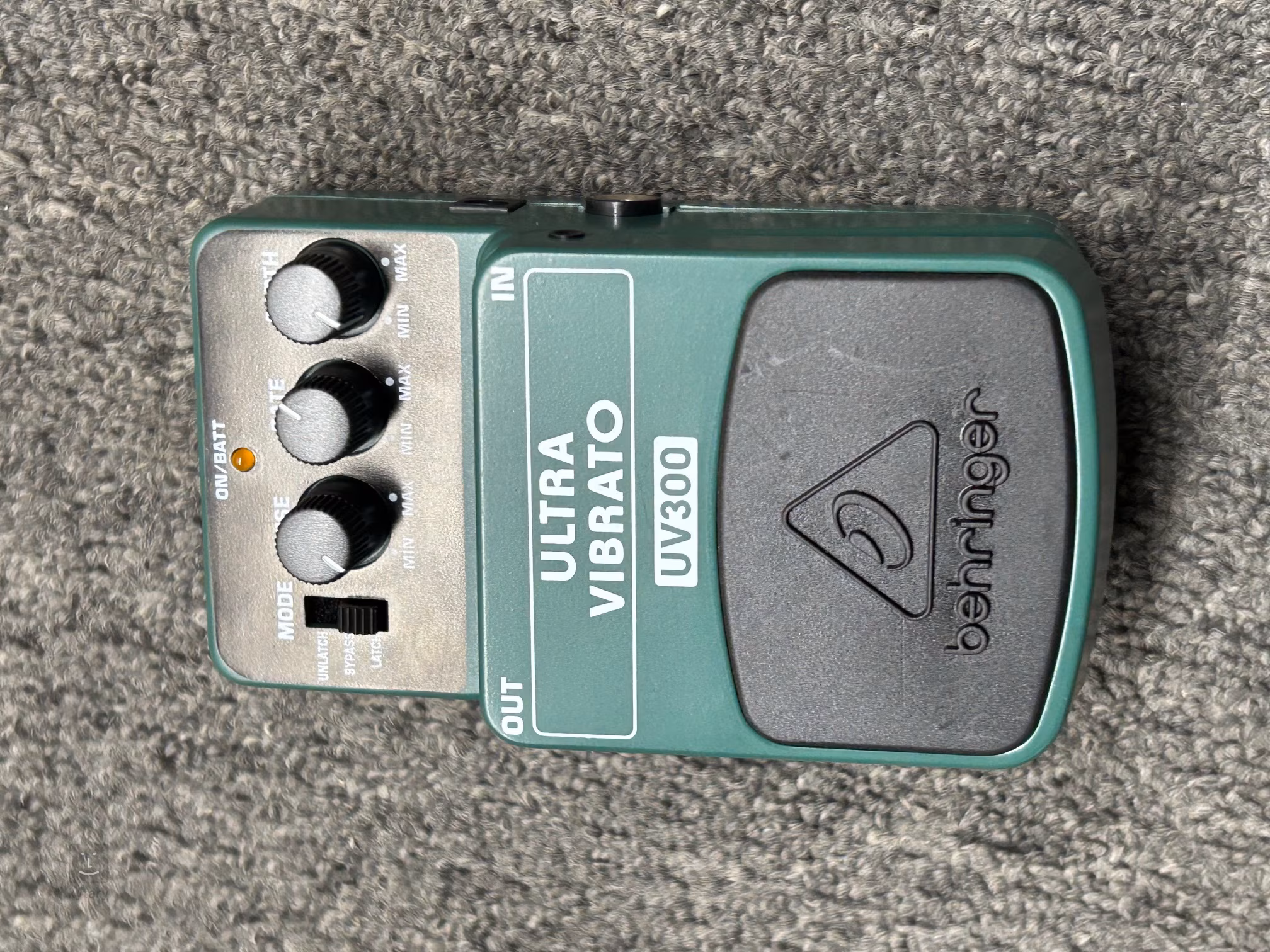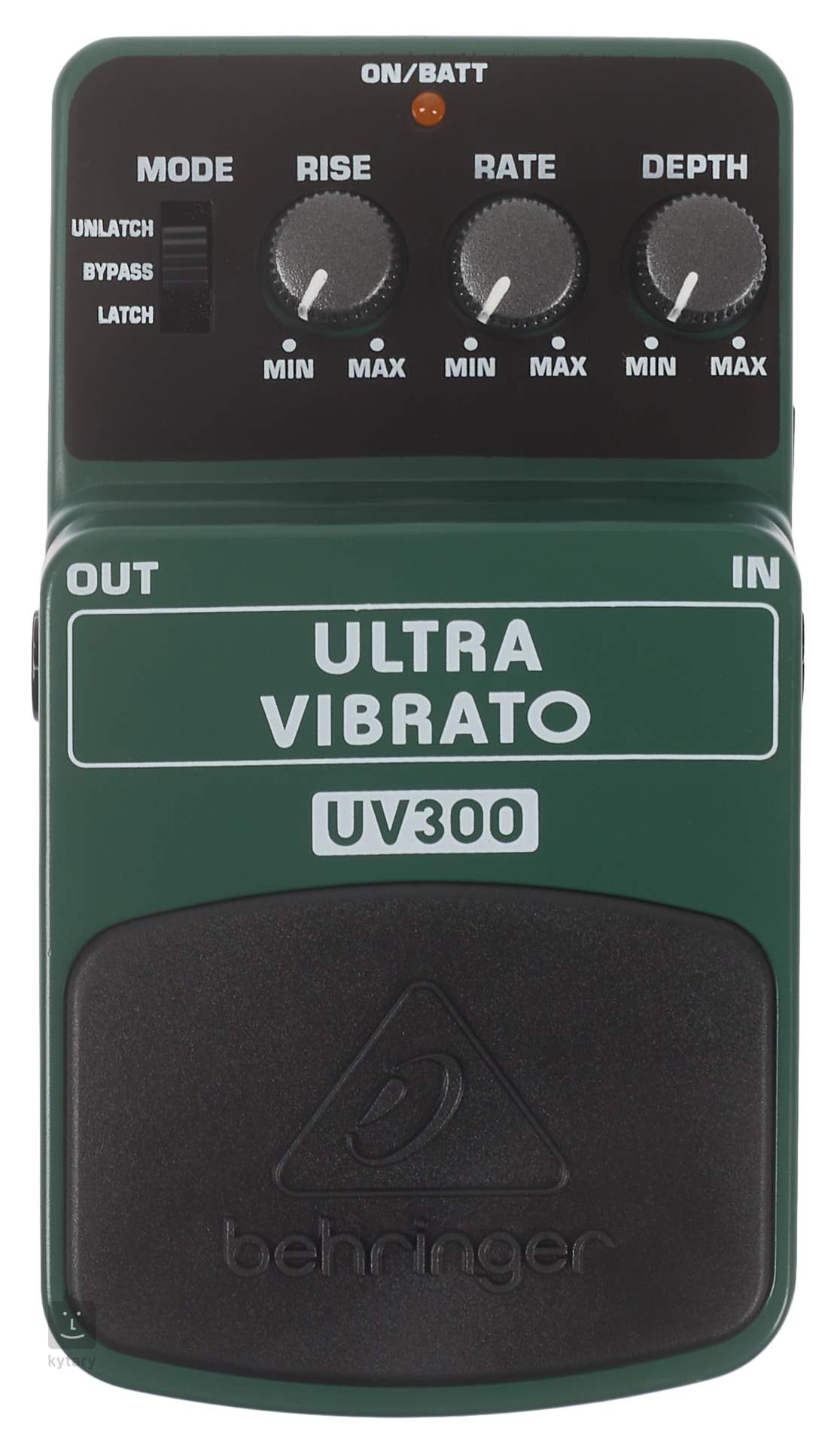 Behringer UV300 Ultra Vibrato je kompaktný gitarový vibrato efekt, ktorý ponúka klasickú moduláciu výšky tónu a priestorový vibrato efekt známy zo 60. a 70. rokov. Nastavenie jednotlivých ovládacích prvkov určuje rýchlosť a intenzitu modulácie efektu a čas, kedy efekt tremolo dosiahne najväčšiu zmenu ladenia. Prepínač Mode prepína medzi štandardným Latch modom (stlačením nožného spínača sa efekt zapne/vypne), Unlatch/Momentary modom (efekt je aktívny len počas stlačenia nožného spínača) a Bypass modom. Jednoznačným plusom, ako pri všetkých produktoch Behringer, je pomer cena/výkon.
