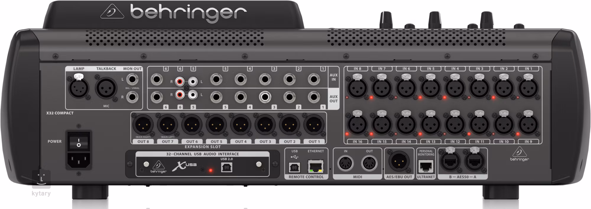 Behringer X-32 Compact je digitálny mixážny pult, ktorý ponúka celkom 16 predzosilňovačov MIDAS, 40 vstupov, 25 zberníc, 17 motorizovaných faderov, LCD pásik s informáciami pre každý kanál, zvukovú kartu 32/32 a diaľkové ovládanie cez iPad/iPhone.