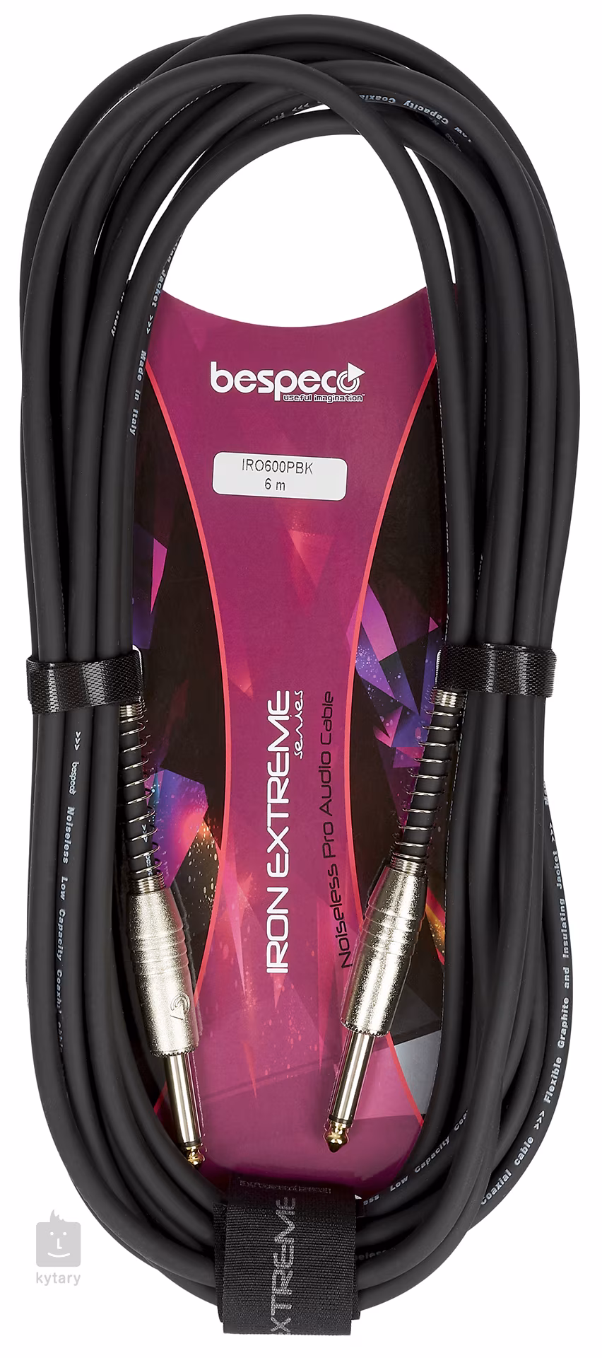 Tento prístrojový kábel Bespeco Iron Extreme Series je vybavený vodičom z 98 % bezkyslíkatej medi (OFC) a vnútorným polovodivým PVC plášťom, ktorý nevytvára šum. Ku kvalite zvuku prispieva aj špirálové tienenie na viac ako 92 percentách vodičov alebo pozlátené konektory s kovovým telom. Samozrejmosťou je aj odolný a zároveň pružný plášť z PVC a vulkanizovaného silikónu.