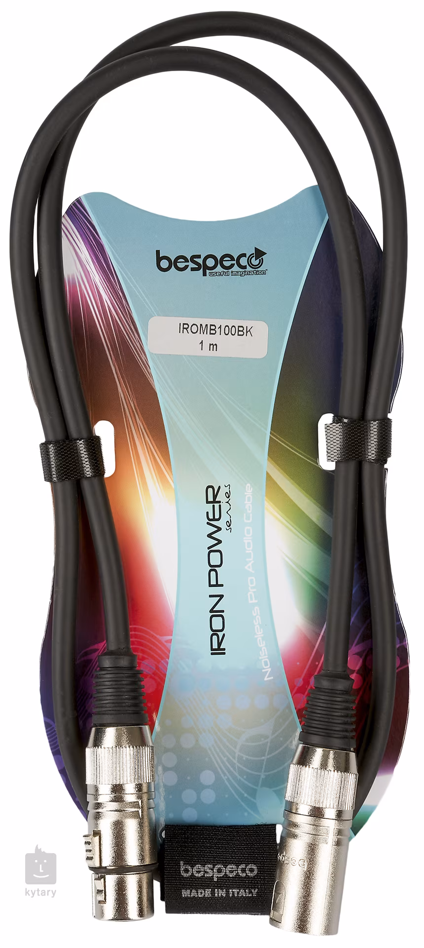 Mikrofónový kábel Bespeco zo série Iron. Vnútro kábla je vyrobené z 98 % OFC medi, konektory sú z odolnej ocele a povrch je vyrobený z extrémne pevného PVC pre maximálnu flexibilitu a dlhú životnosť. Súčasťou balenia je pár popruhov na suchý zips na jednoduchú prepravu.