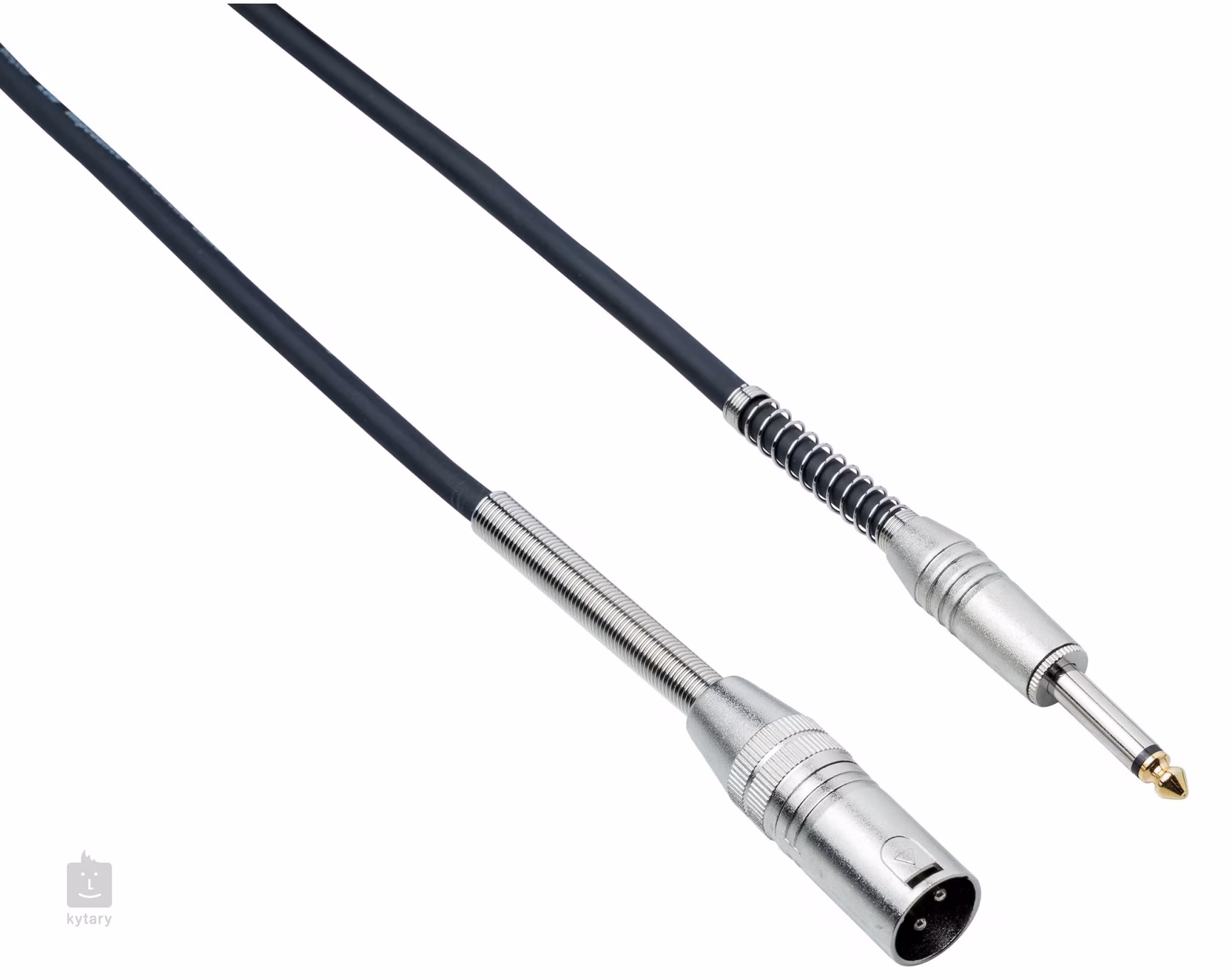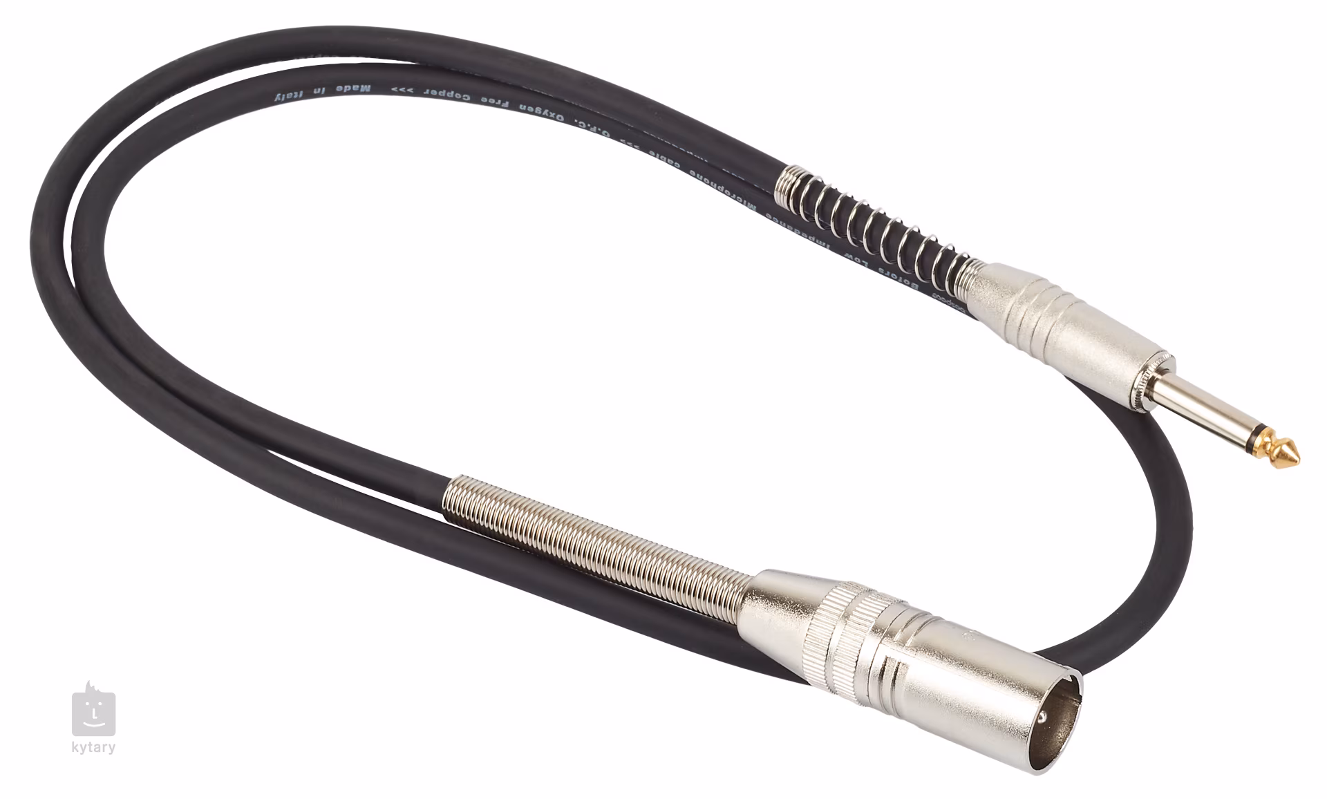 Mikrofónový kábel s profesionálnymi kovovými konektormi XLR(M) a Jack 6,3 mm.