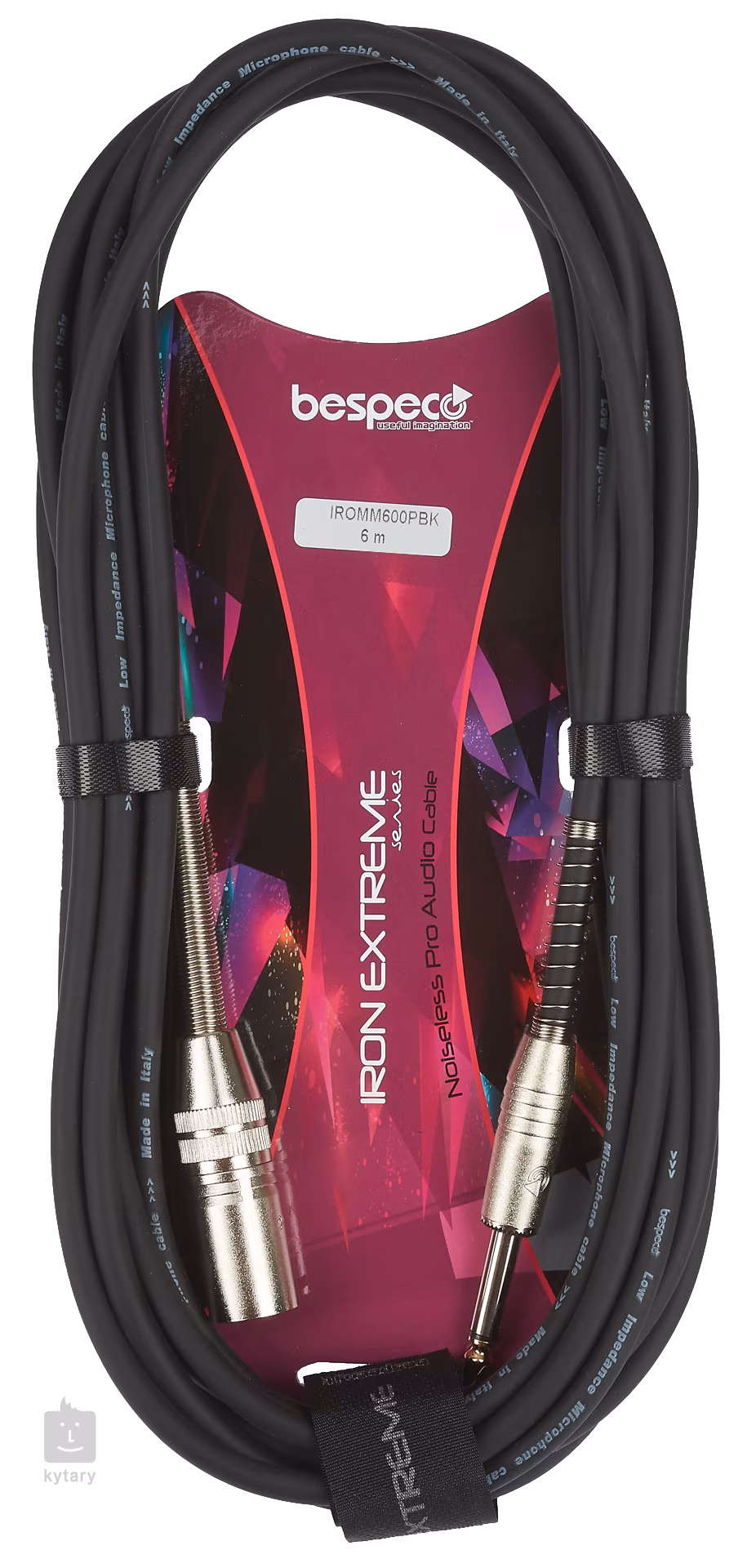 Mikrofónový kábel s profesionálnymi kovovými konektormi XLR(M) a 6,3 mm Jack. Tento prístrojový kábel Bespeco Iron Extreme Series je vybavený vodičom z 98 % bezkyslíkatej medi (OFC) a vnútorným polovodivým PVC plášťom, ktorý nevytvára šum. Ku kvalite zvuku prispieva aj špirálové tienenie na viac ako 92 percentách vodičov alebo pozlátené konektory s kovovým telom. Samozrejmosťou je aj odolný a zároveň pružný plášť z PVC a vulkanizovaného silikónu.