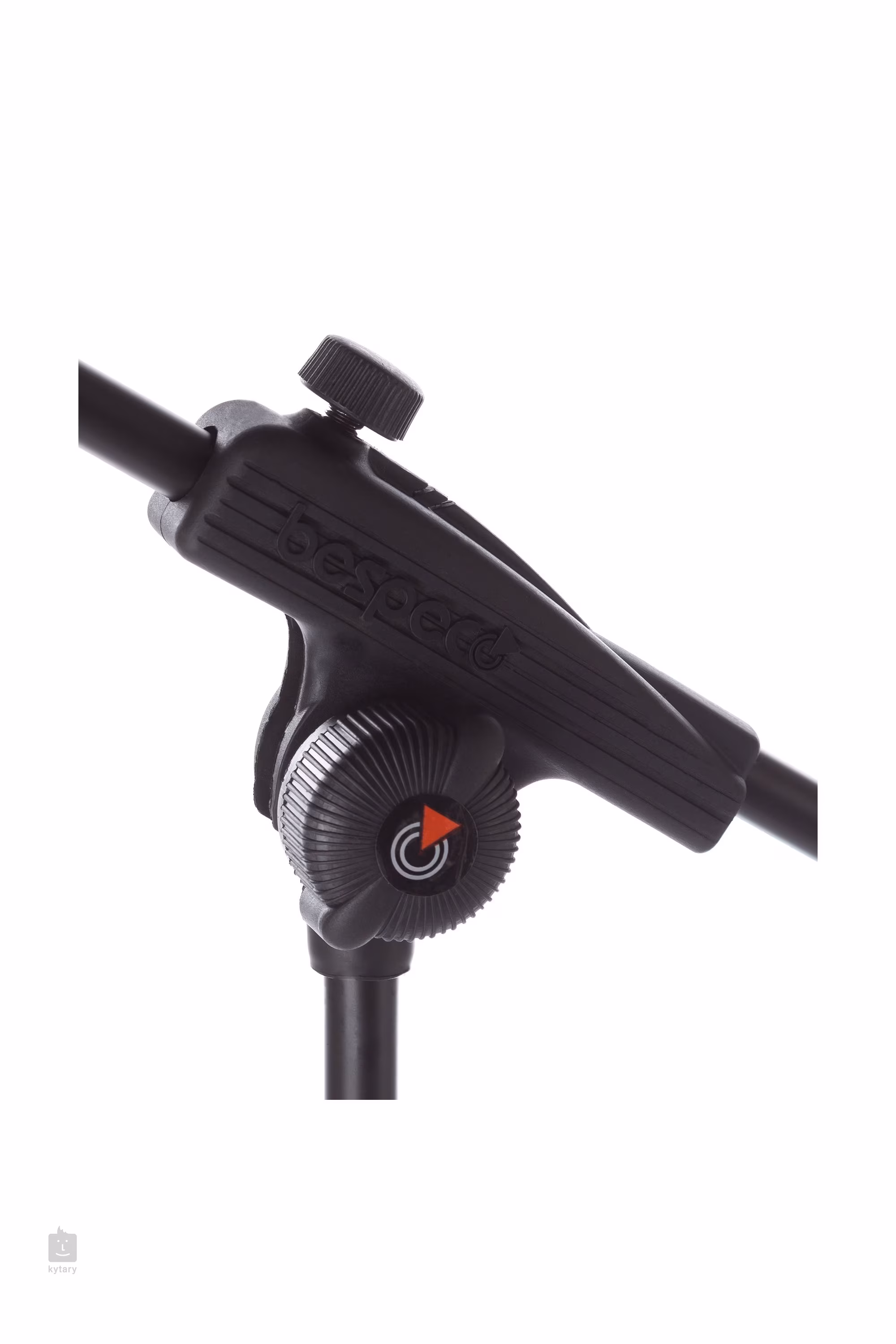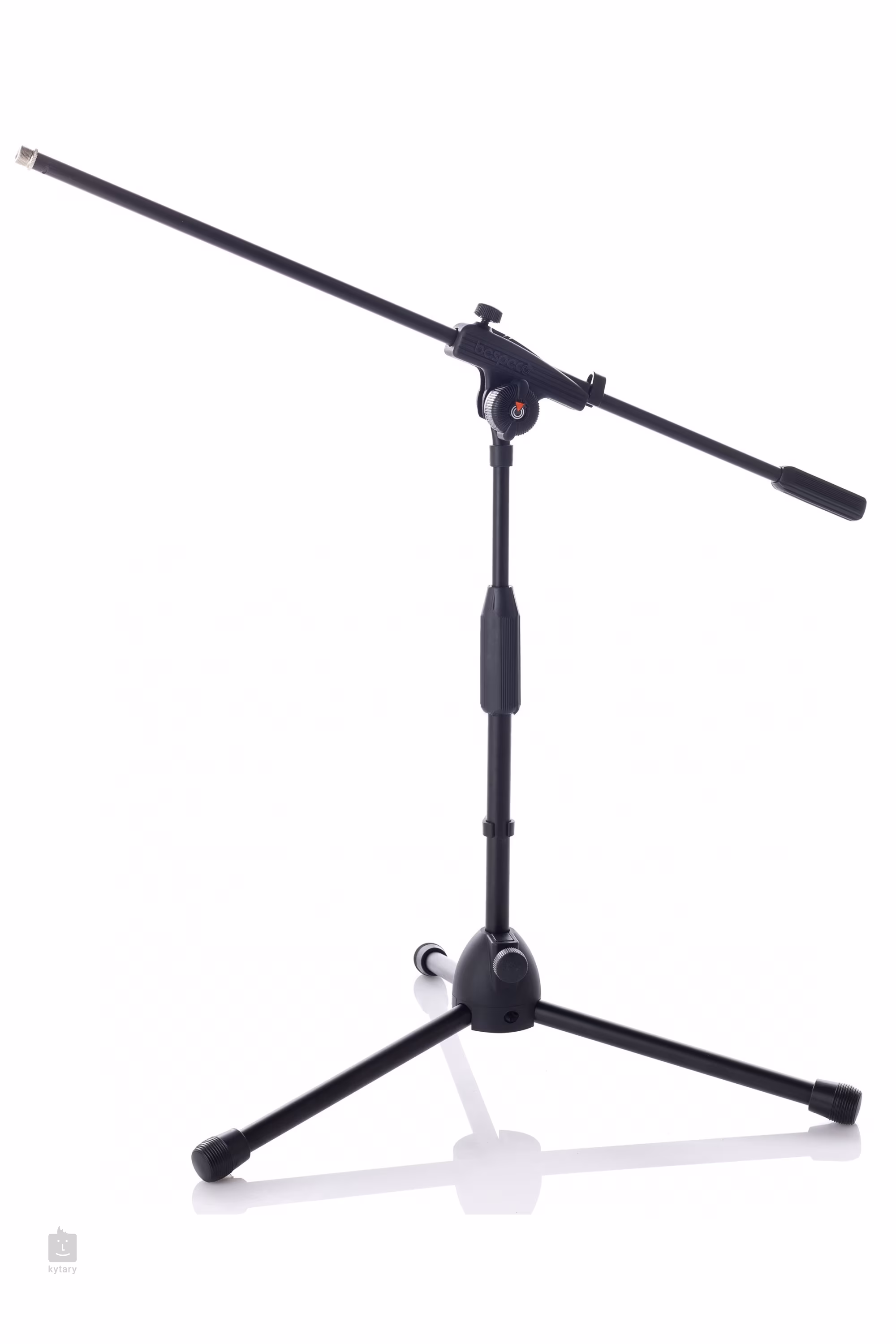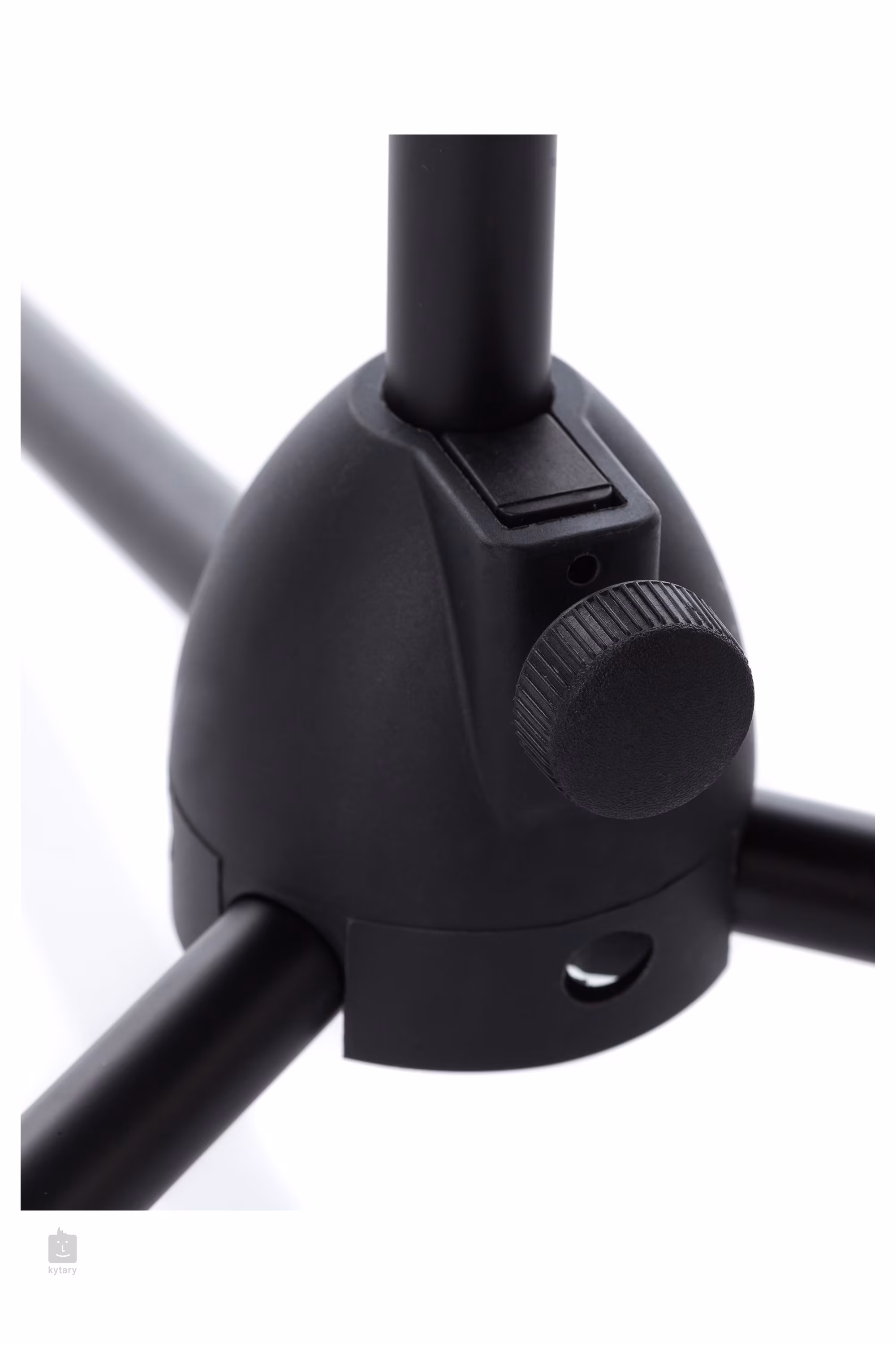 Nastaviteľný otočný mikrofónový stojan s trojnohým podstavcom so závitovým zámkom a nastaviteľnými káblovými svorkami.