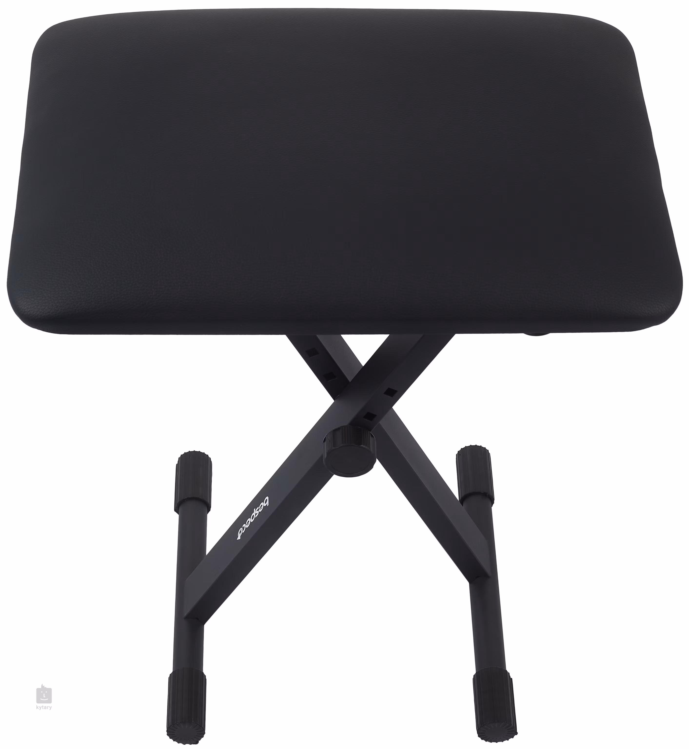 Sedák je potažen kvalitním vinylovým povrchem a vyplněn nedeformovatelnou pěnou, která zajišťuje pohodlí i při dlouhém hraní bez ztráty tvaru. Stabilitu zaručují čtyři vyrovnávací nožky, které se snadno přizpůsobí nerovnostem podlahy.