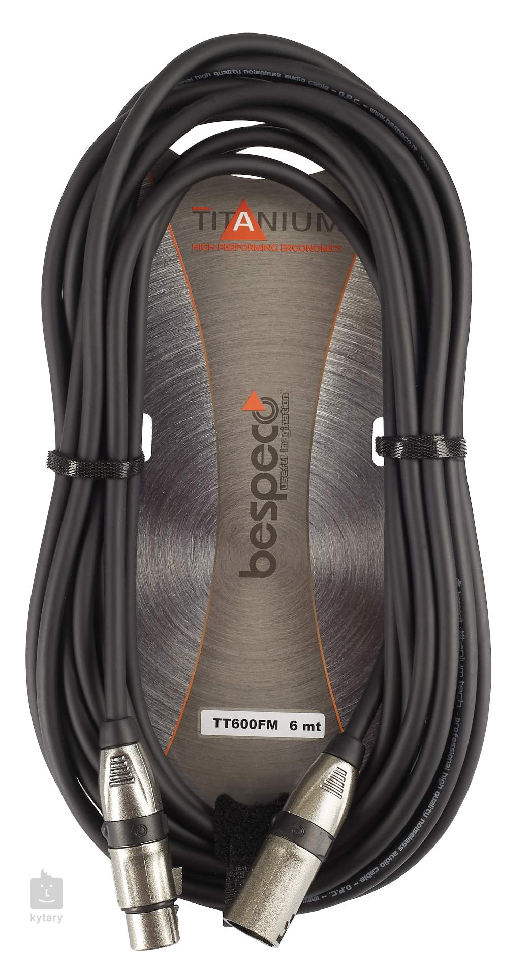 Bespeco Titanium je nový rad vysokokvalitných nástrojových a mikrofónových káblov. TT vás zaujmú nielen svojimi perfektnými zvukovými vlastnosťami, ale aj unikátnym a elegantným dizajnom. Medzi výhody káblov Titanium Tech patrí kompletné pozlátenie konektorov 24-karátovým zlatom, vystuženie vnútorných spojov živicou, priemer kábla 7 milimetrov, hrubý a odolný plášť či účinné tienenie pokrývajúce 96 % vodiča.