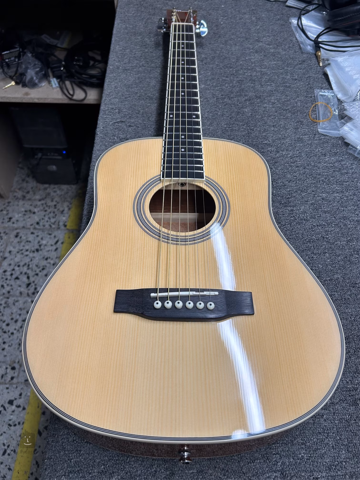 Blond D-OA-34 NAT je detská akustická gitara so zmenšeným telom typu dreadnought. Je vybavená laminovanou smrekovou rezonančnou doskou, laminovanou sapele zadnou doskou a lubmi, mahagónovým krkom a hmatníkom a modernou kompozitnou kobylkou. Struny sú uchytené v chrómových ladiacich mechanikách prostredníctvom plastového nultého pražca. Štýlovú povrchovú úpravu podčiarkuje nanesený lesklý lak a tradičné prvky v podobe svetlej obvodovej vrchnej väzby (ABS) doplnenej čiernymi a bielymi linkami a rozety zloženej z čiernych a bielych liniek.