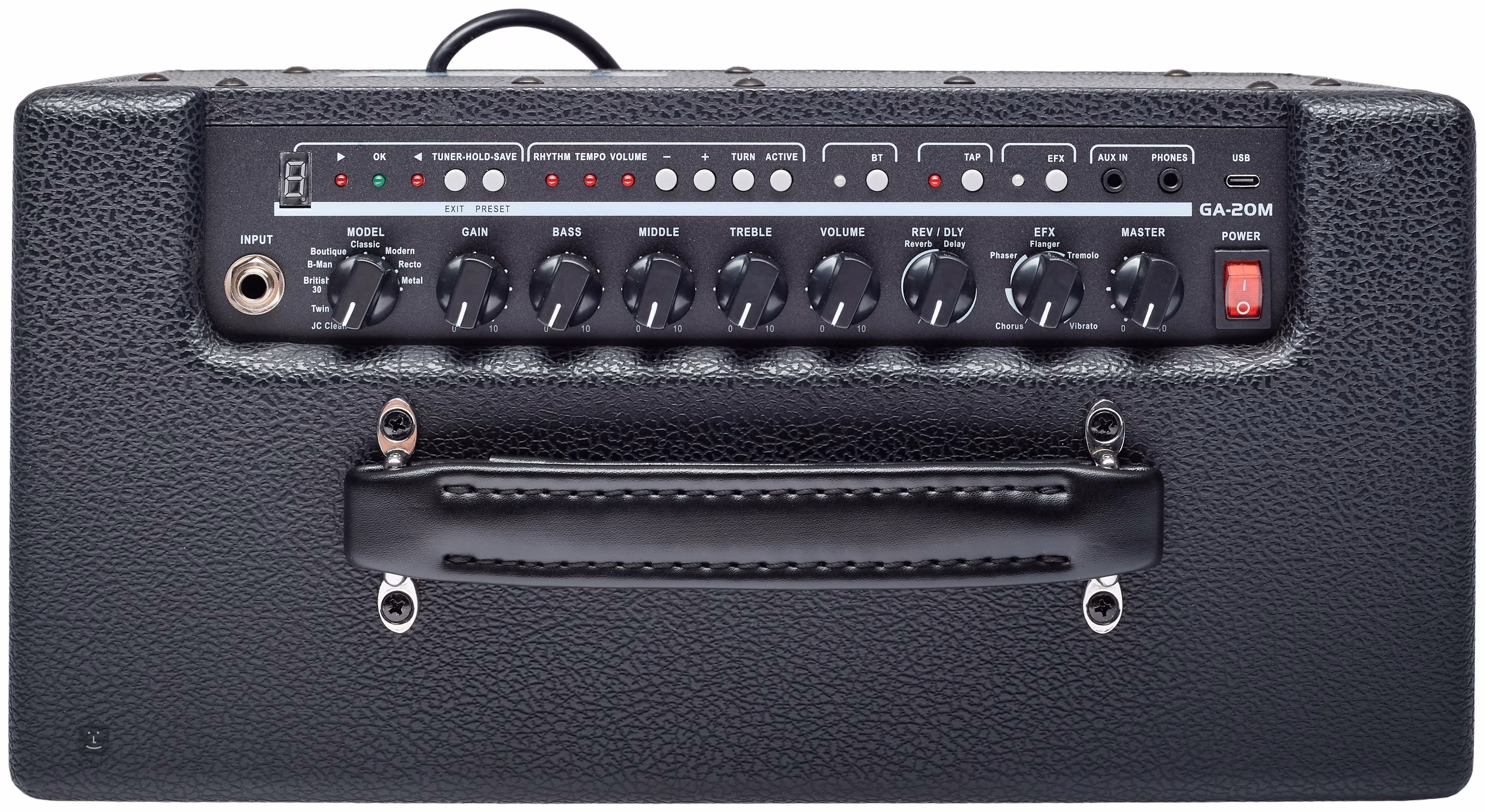 Cenovo dostupný gitarový modelingový kombo Blond GA-20M ponúka výkon 20 W z dvoch 5-palcových reproduktorov, deväť simulácií gitarových zosilňovačov od známych značiek (od vintage a boutique až po high-gain), efektový procesor s reverbom, delayom, chorusom, phaserom, flanger, tremolo a vibrato, päť predvolieb, sedem doprovodných stop z bicieho automatu, kompatibilitu s Bluetooth, vstavaný ladič, výstup na slúchadlá, vstup aux-in na prehrávanie doprovodných stop z externých MP3 prehrávačov a multimediálnych zariadení a USB port na aktualizáciu softvéru a priame nahrávanie.