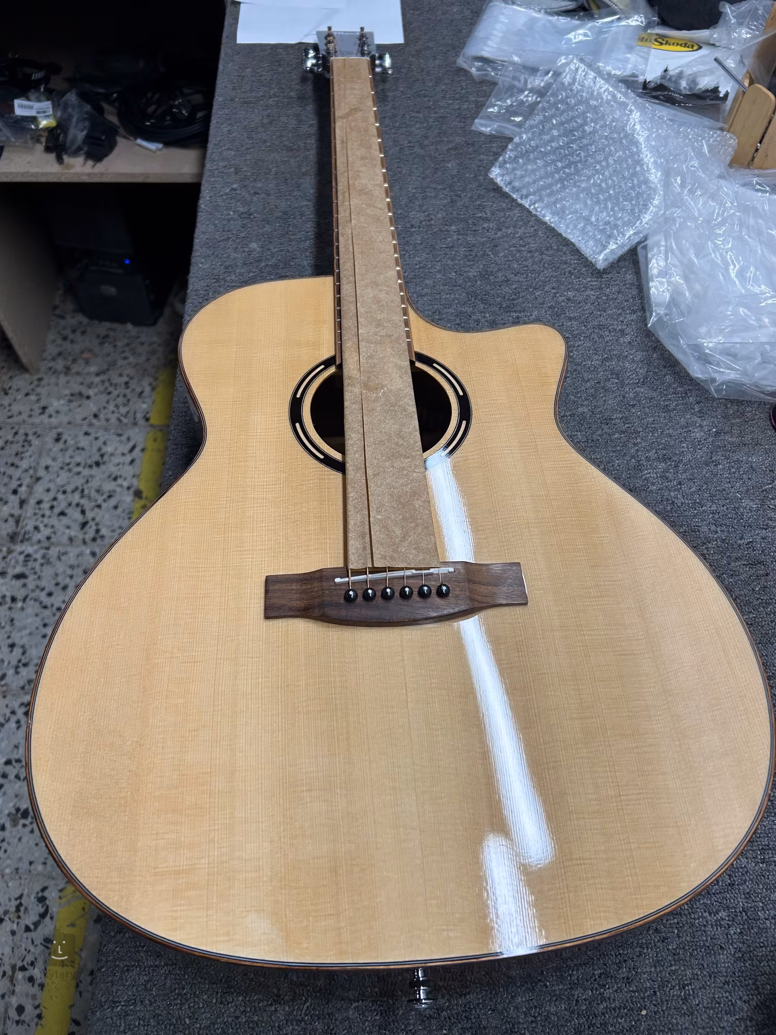 Vady v laku na hraně lubu a přední desky (viz foto). Jinak je nástroj nový a v pořádku,