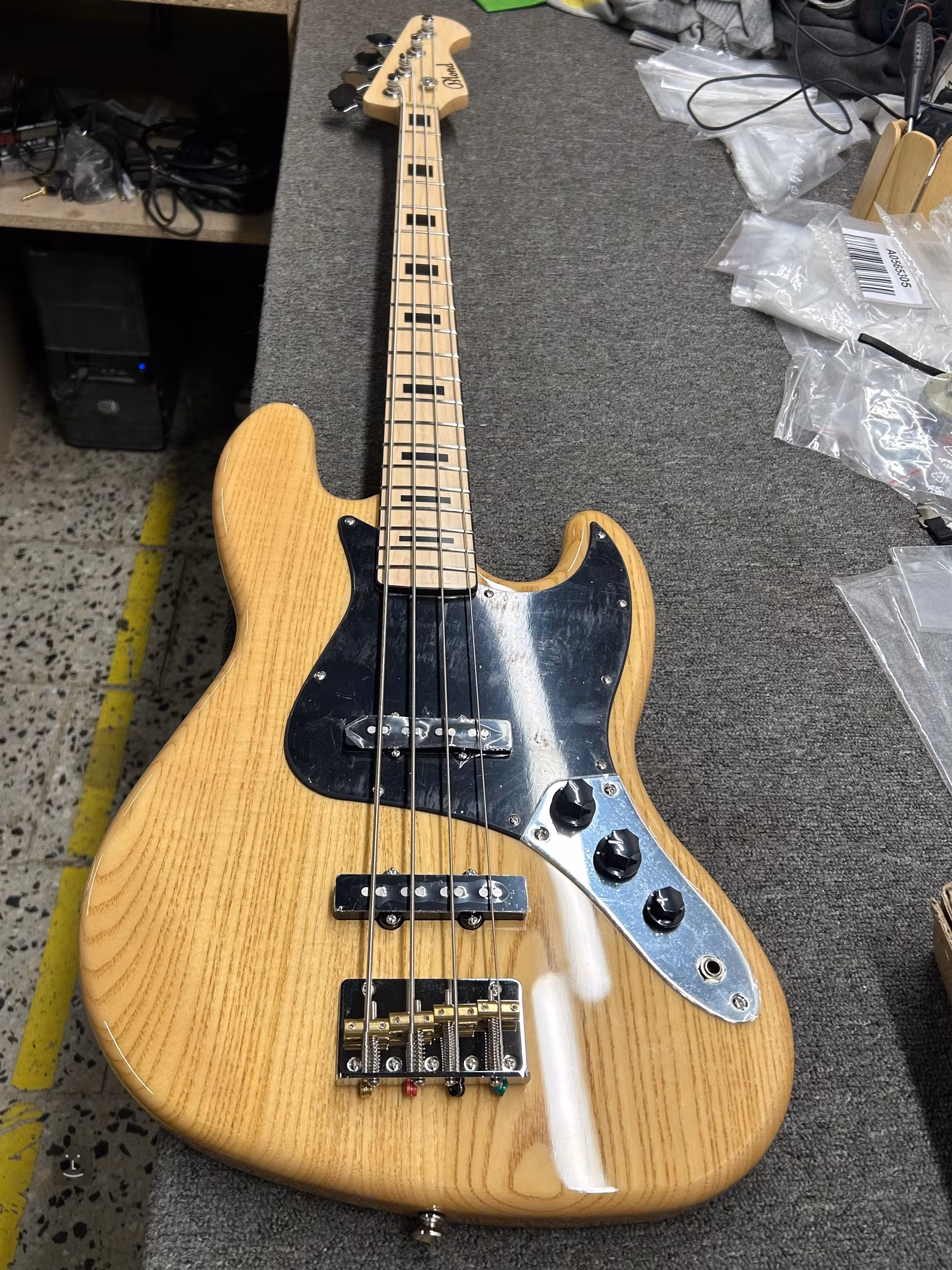 Elektrická baskytara JAB-2 MN od společnosti Blond z řady Vintage Series nabízí autentický zvuk inspirovaný legendárními nahrávkami. Tělo z jasanu ponechané ve své přírodní barvě je doplněno šroubovaným javorovým krkem s dvaceti pražcovým hmatníkem a charakteristickým Skunk Stripe na zadní straně. Černé blokové intarzie a černá lemovka krku dodávají nástroji elegantní vzhled.