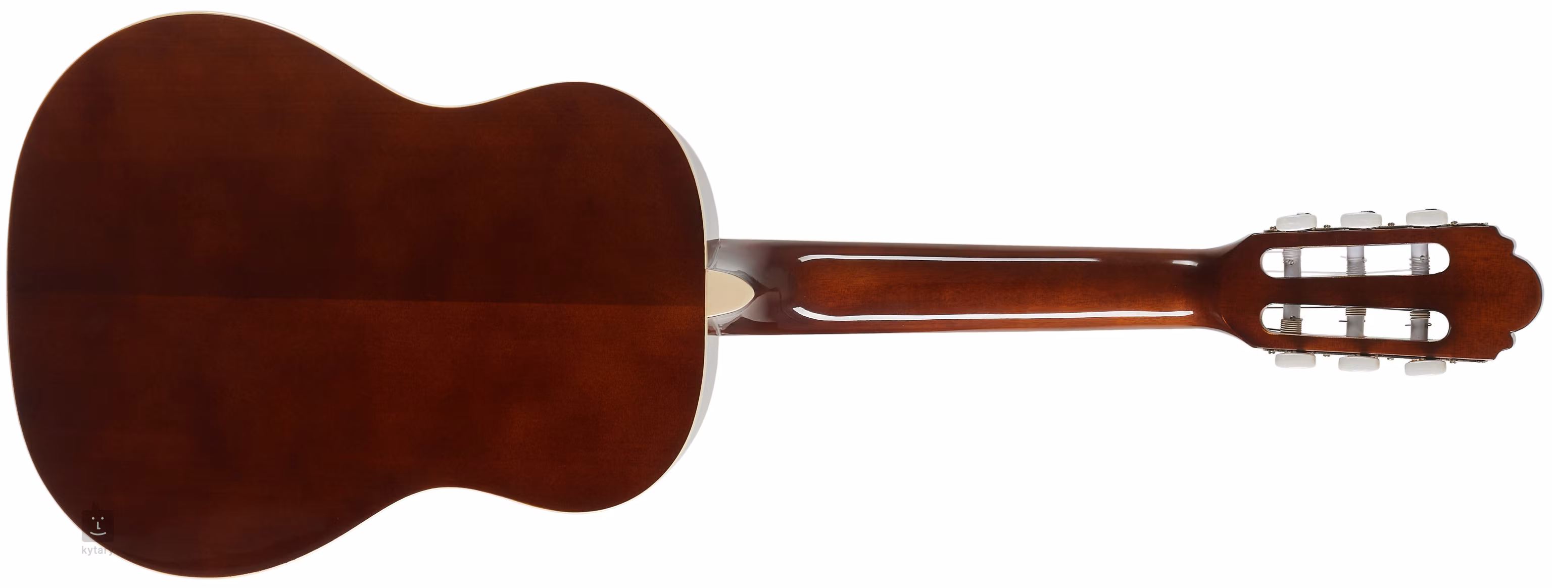 Detská klasická gitara Blond OC-12 NAT veľkosti 1/2 má telo vyrobené z laminovaného smrekového a lipového dreva, krk z dreva okoumé a hmatník a hlavicu z moderného kompozitného materiálu. Struny sú uchytené v klasických pochrómovaných mechanikách s bielymi kolíkmi nad plastovým hmatníkom. Štýlovú povrchovú úpravu zvýrazňuje nanesený lesklý lak a tradičné prvky v podobe ozdobných roziet a plastových líšt (ABS).