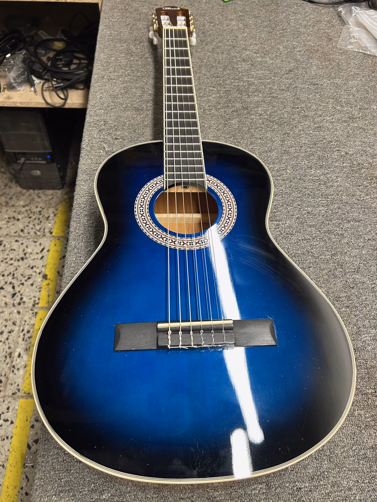 Klasické gitary Blond sú cenovo dostupné nástroje vhodné pre začínajúcich hudobníkov. Pomôžu im osvojiť si základné techniky a zručnosti, a to za cenu, ktorá nezatíži rodinný rozpočet. Detská klasická gitara Blond OC-34 BB 3/4 má telo vyrobené z laminovaného smreku a lipy, krk z okoumé a hmatník a kobylku z moderného kompozitného materiálu. Struny sú pripevnené pomocou plastovej matice k klasickým chrómovým ladiacim mechanizmom s bielymi kolíkmi. Štýlový vzhľad dotvára lesklý lak, povrchová úprava Blue Burst na prednej doske a tradičné prvky v podobe ozdobnej rozety a plastového lemovania (ABS).