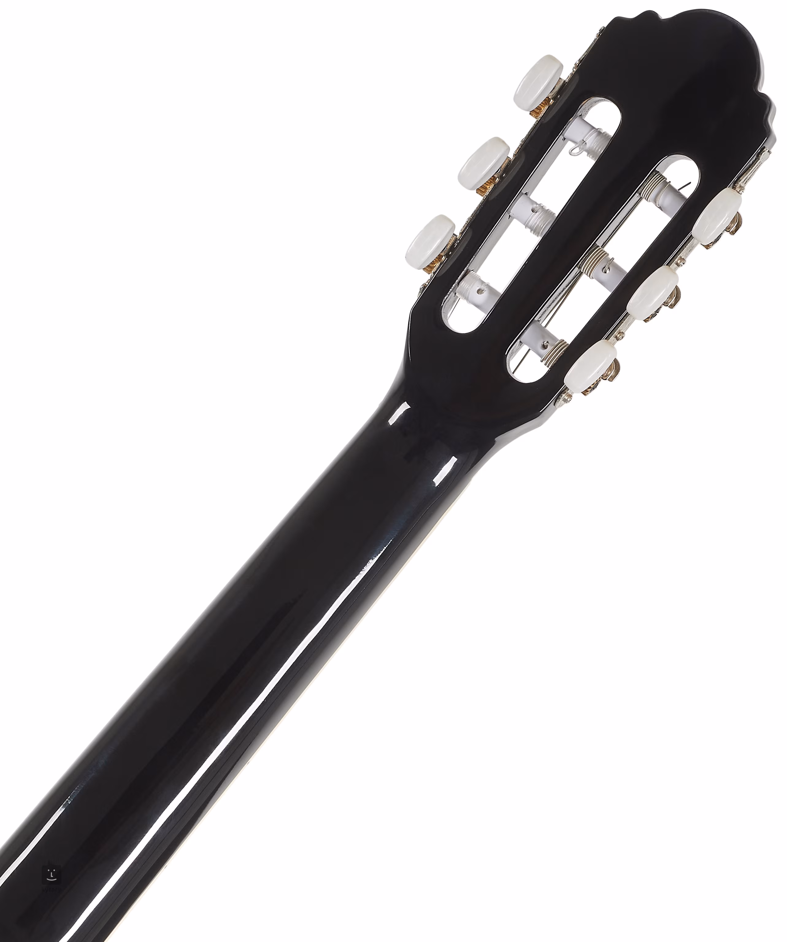 Detská klasická gitara Blond OC-34 BK veľkosti 3/4 má telo vyrobené z laminovaného smrekového a lipového dreva, krk z dreva okoumé a hmatník a hlavicu z moderného kompozitného materiálu. Struny sú uchytené v klasickej pochrómovanej mechanike s bielymi kolíkmi nad plastovým nultým pražcom. Štýlovú povrchovú úpravu podčiarkuje nanesený lesklý lak, čierna povrchová úprava rezonančnej dosky a tradičné prvky v podobe ozdobnej rozety a plastovej lišty (ABS).