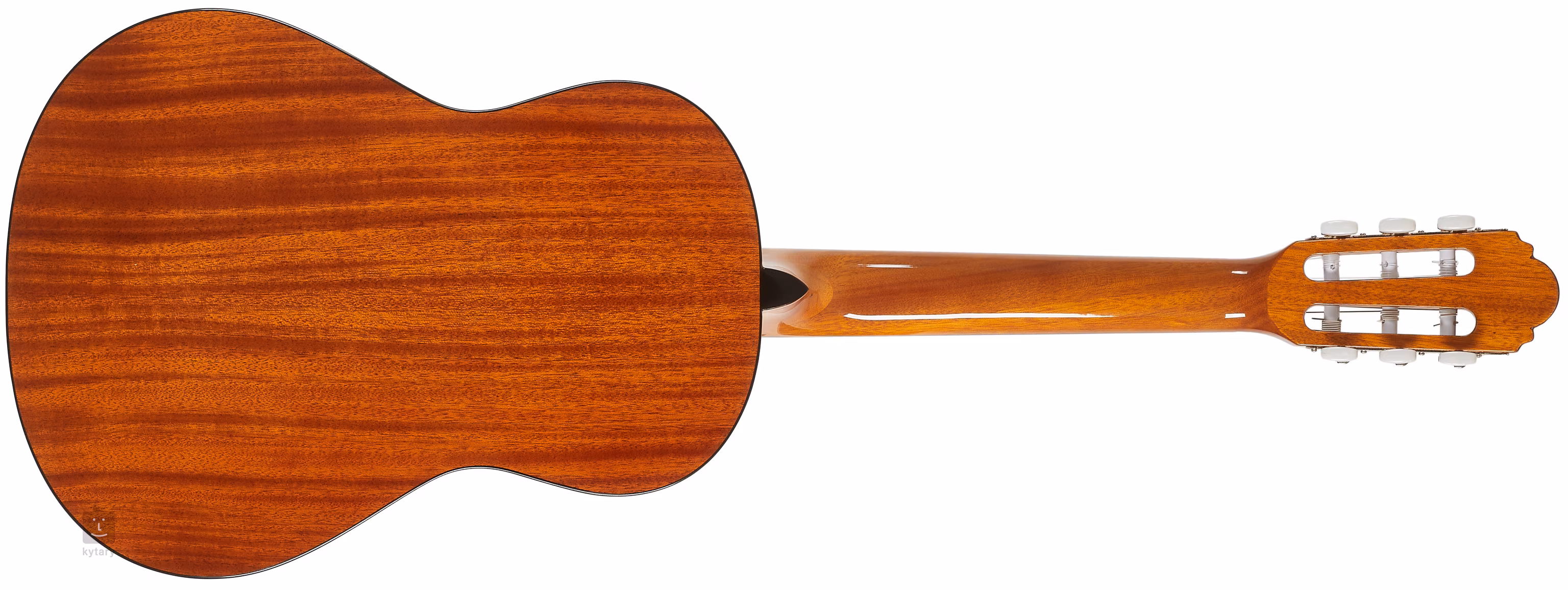 Detská klasická gitara Blond SC-34 M NAT vo veľkosti 3/4 má telo vyrobené z laminovaného smrekového a mahagónového dreva, mahagónový krk a hmatník a hlavicu z moderného kompozitného materiálu. Struny sú uchytené v klasickej pochrómovanej mechanike prostredníctvom plastového nultého pražca. Štýlovú povrchovú úpravu podčiarkuje nanesený lesklý lak a tradičné prvky v podobe ozdobných roziet a plastových líšt (ABS).