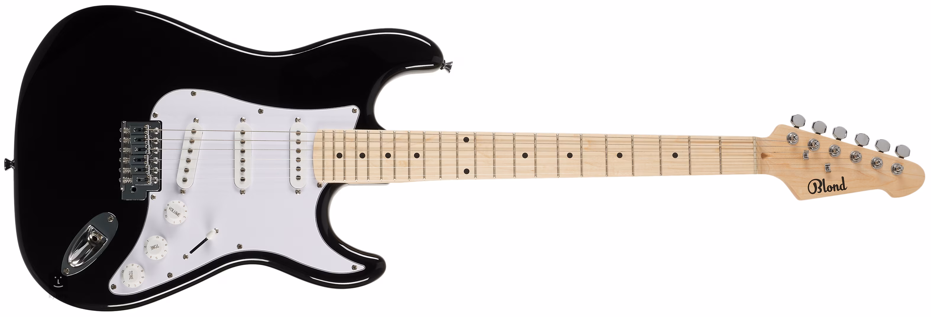 Elektrická gitara Blond STR-1 MN BK je ideálnou voľbou pre začínajúcich rockerov a rockerky. Ide o nástroj s tradičným tvarom ST a všetkými prvkami, ktoré si s týmto typom gitary spájate - od snímačov typu ST s jednou cievkou cez synchronizované tremolo až po pickguard.