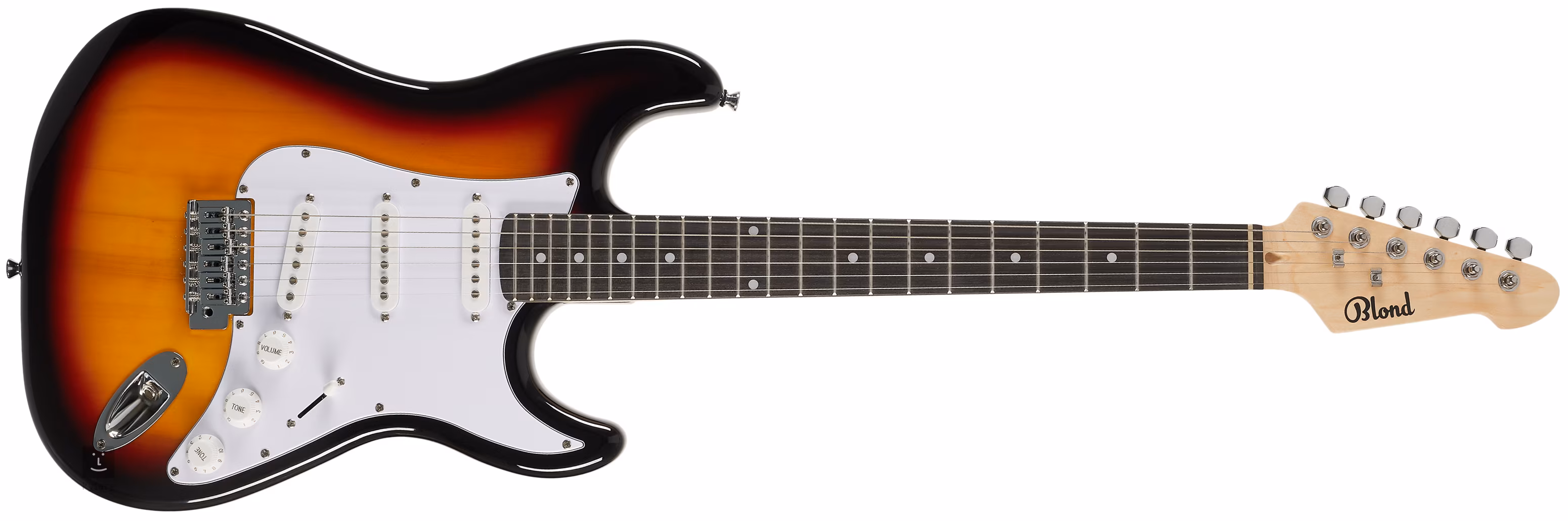 Elektrická gitara Blond STR-1 SB je ideálnou voľbou pre začínajúcich rockerov a rockerky. Ide o nástroj s tradičným tvarom ST a všetkými prvkami, ktoré si s týmto typom gitary spájate - od snímačov typu ST s jednou cievkou cez synchronizované tremolo až po pickguard.