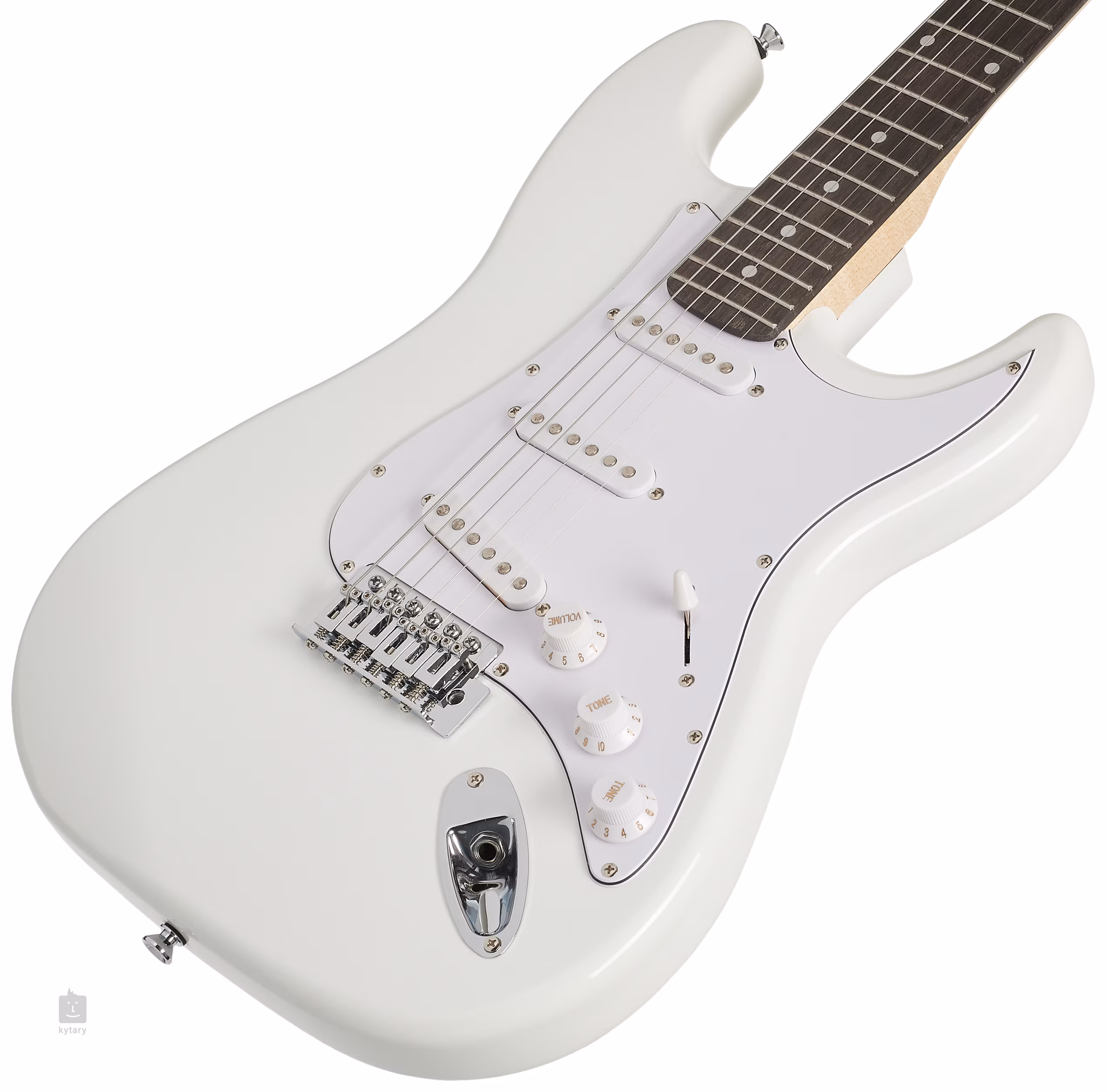 Elektrická gitara Blond STR-1 WH je ideálnou voľbou pre začínajúcich rockerov a rockerky. Ide o nástroj s tradičným tvarom ST a všetkými prvkami, ktoré si s týmto typom gitary spájate - od snímačov typu ST s jednou cievkou cez synchronizované tremolo až po pickguard.