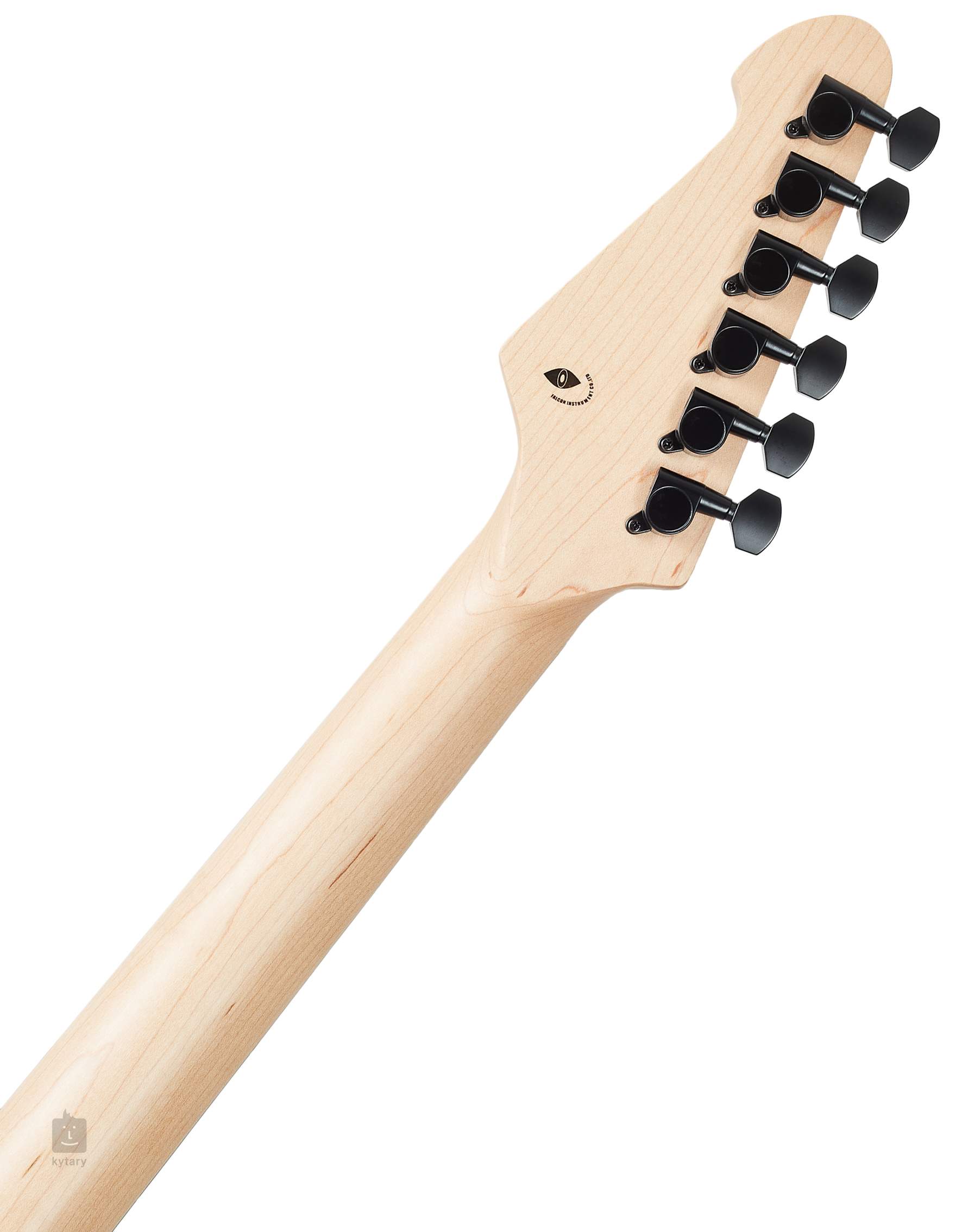 Struny držia v die-cast ladiacich mechanikách a synchronizovanom tremole. Pekné spracovanie podčiarkuje pickguard, hardvér a potenciometre v štýlovom čiernom prevedení.