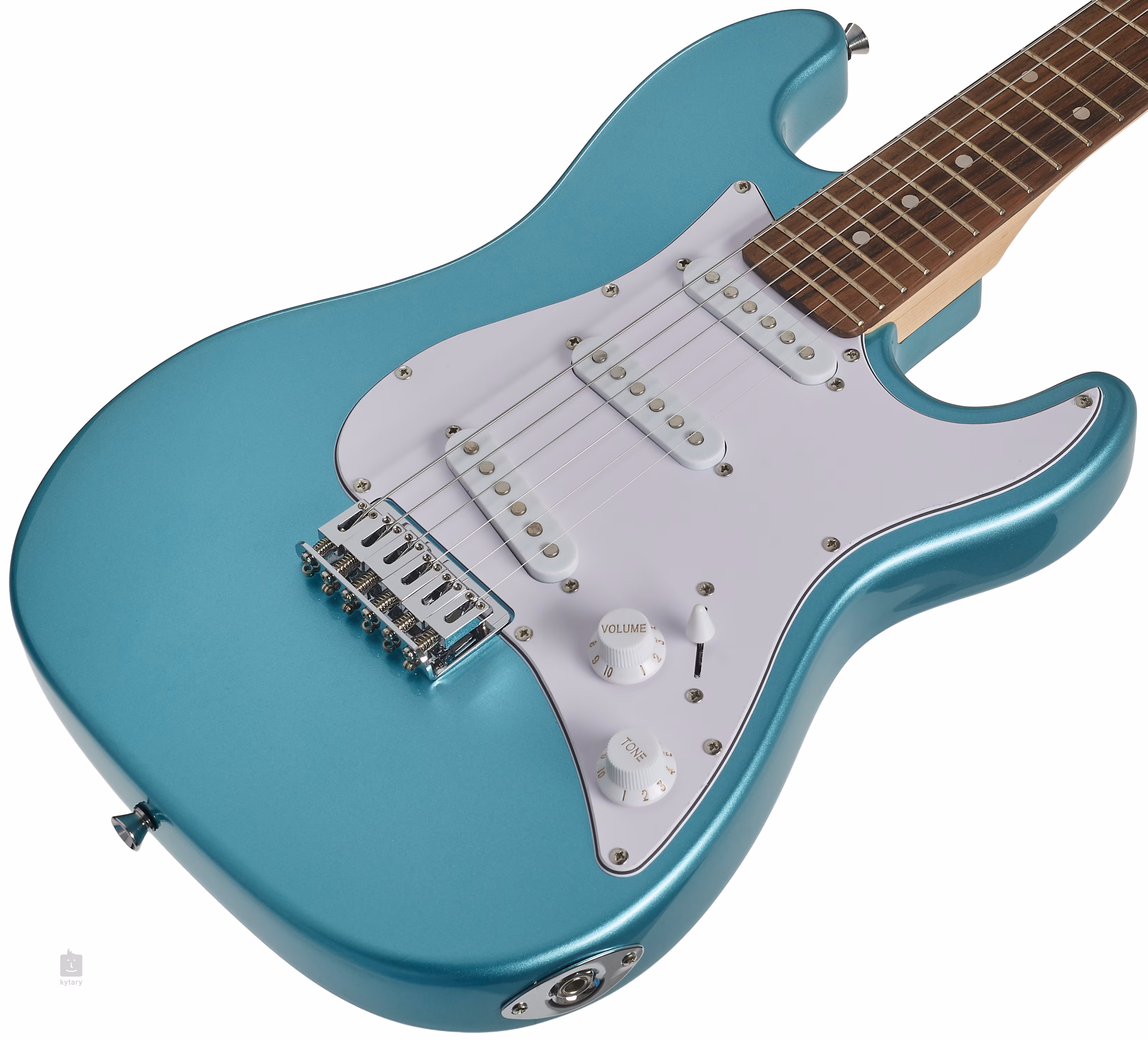 Struny jsou uchyceny ve firemních ladicích mechanikách a pevné top-loading kobylce, která nahrazuje tradiční tremolo ST modelů. V této cenové relaci může být pevná kobylka i výhrou. Stylové zpracování podtrhuje bílý pickguard.