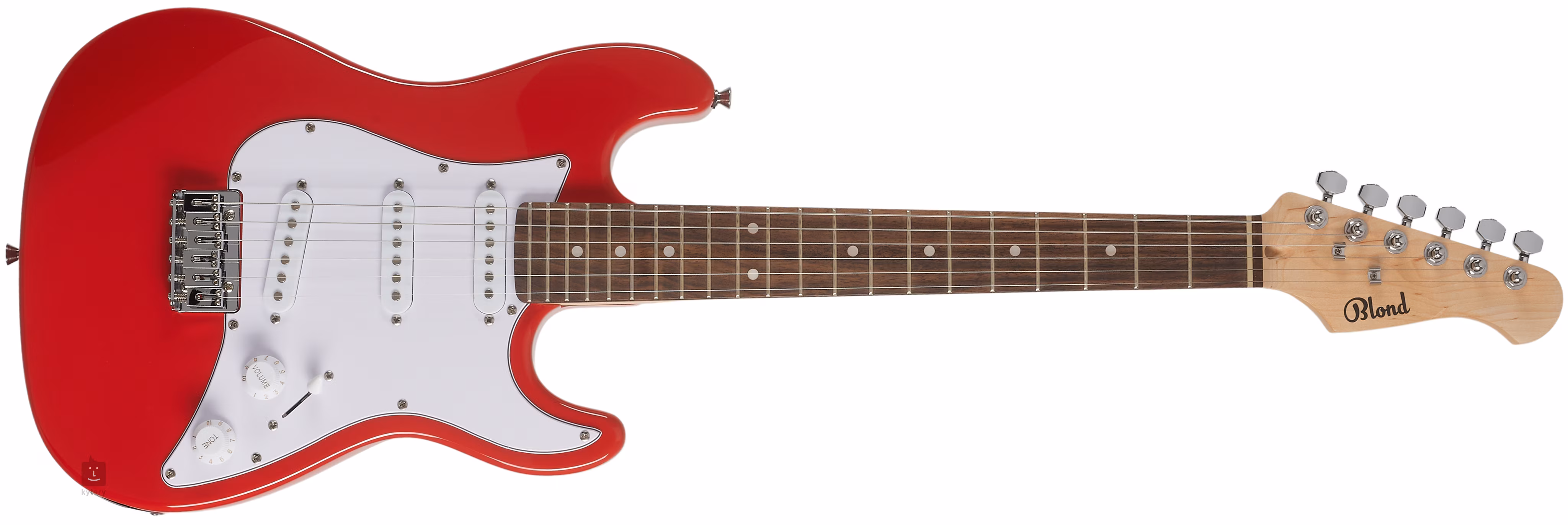 Elektrická gitara Blond STR-2 Mini Red 3/4 je ideálnou voľbou pre deti, ktoré chcú začať hrať na elektrickú gitaru, ale štandardné nástroje sú pre ne príliš veľké.