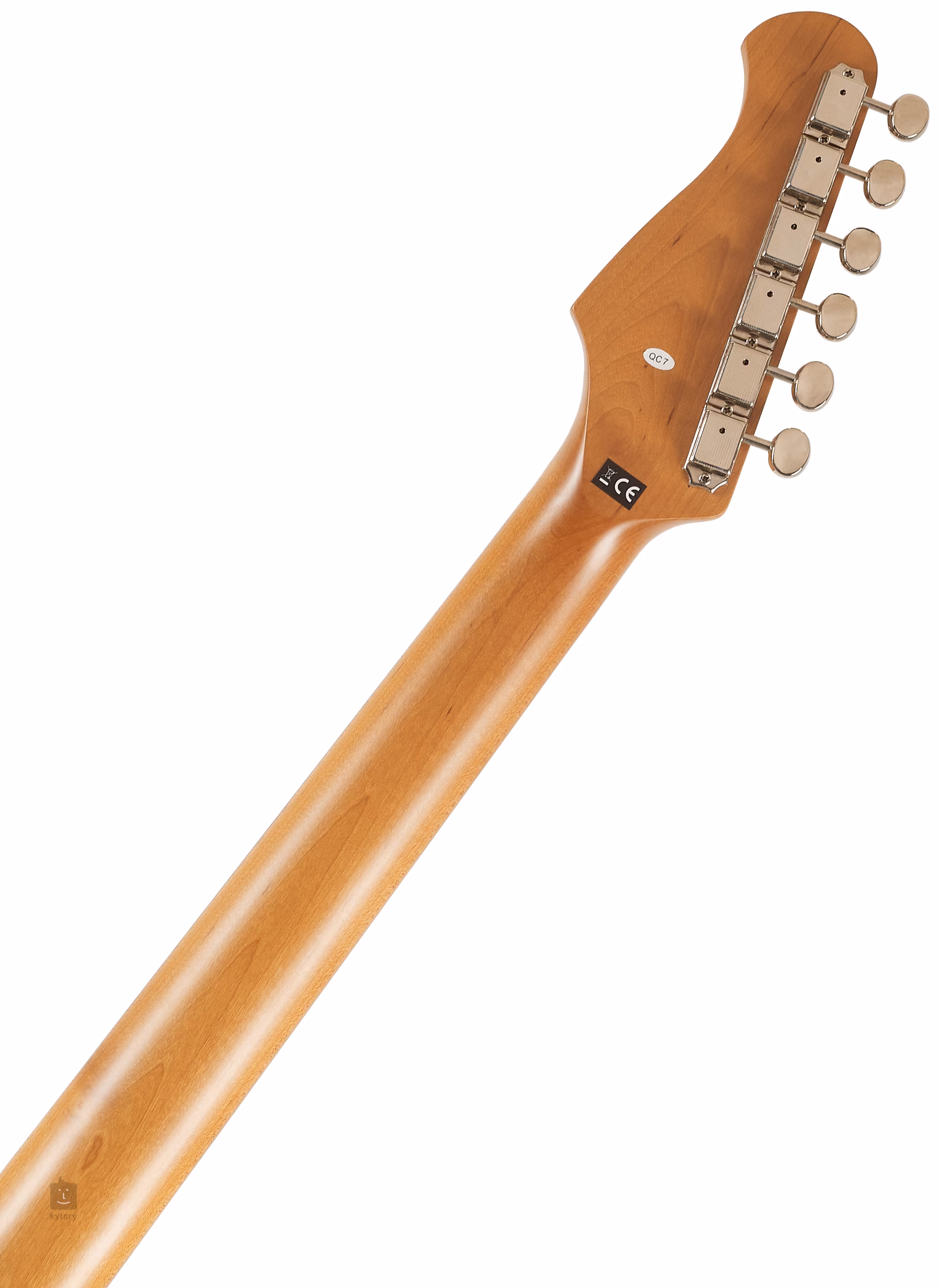 Kombinácia kobylkového humbuckera a dvoch snímačov typu single-coil ST s magnetmi Alnico V dodáva gitare klasické čisté tóny a drive/crunch single-coilov aj plný rockový zvuk humbuckerov. Jej charakter upravíte pomocou tónovej clony, hlasitosti a päťpolohového prepínača snímačov. Struny sú osadené firemnými ladiacimi mechanikami a synchronizovaným tremolom. Štýlové spracovanie podčiarkuje pickguard s imitáciou korytnačiny a chrómový hardvér.