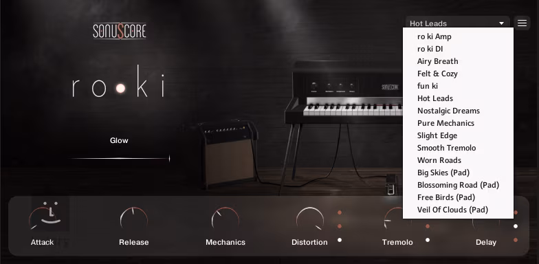 Virtuální nástroj RO•KI přináší zpět autentický zvuk elektrického piana 70. let – ideální pro skladatele, producenty a zvukové designéry, kteří hledají analogovou atmosféru s moderní flexibilitou. Pečlivě nahraný mechanický zvuk nabízí vícenásobné mikrofonní pozice a 20 úrovní citlivosti, čímž zachovává detaily pro živé vystoupení i filmy.
