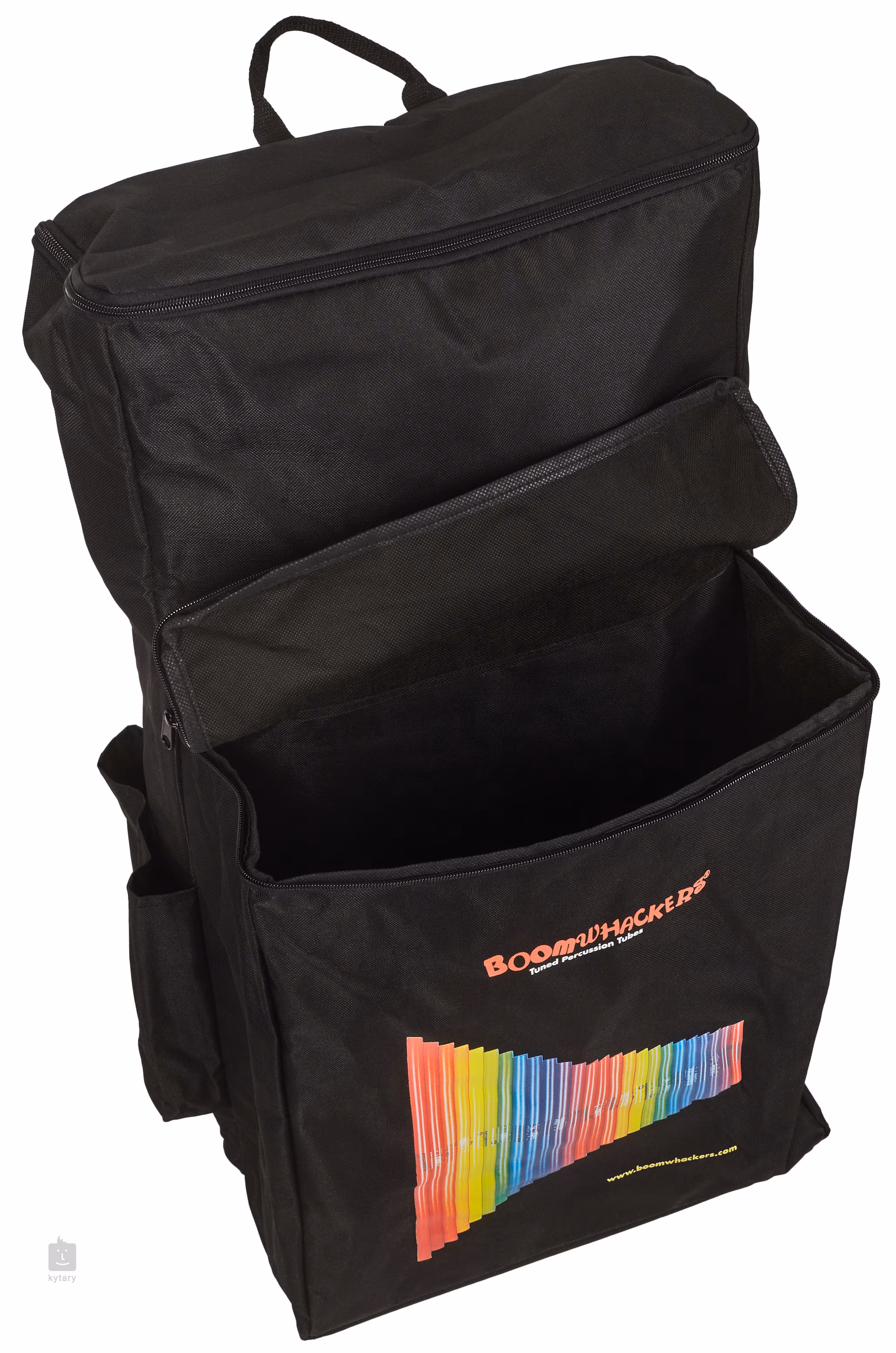 Batoh Boomwhackers (BWBP) je navrhnutý tak, aby umožňoval pohodlné nosenie a ľahkú prepravu veľkého množstva boomwhackers, čo oceníte v školách, škôlkach alebo pri preprave boomwhackers na tábory a spoločenské podujatia. Batoh je vyrobený z pevného, odolného nylonu a má pevné, nastaviteľné chrbtové popruhy. Vnútro batohu je rozdelené na dve priestranné vrecká, jedno pre menšie boomwhackery s maximálnou dĺžkou 40 cm a druhé pre väčšie s dĺžkou až 60 cm. Celkovo sa do batohu zmestí približne 60 boomwhackers a má aj bočné vrecká, kde môžete ľahko uložiť paličky, oktávy a ďalšie príslušenstvo.