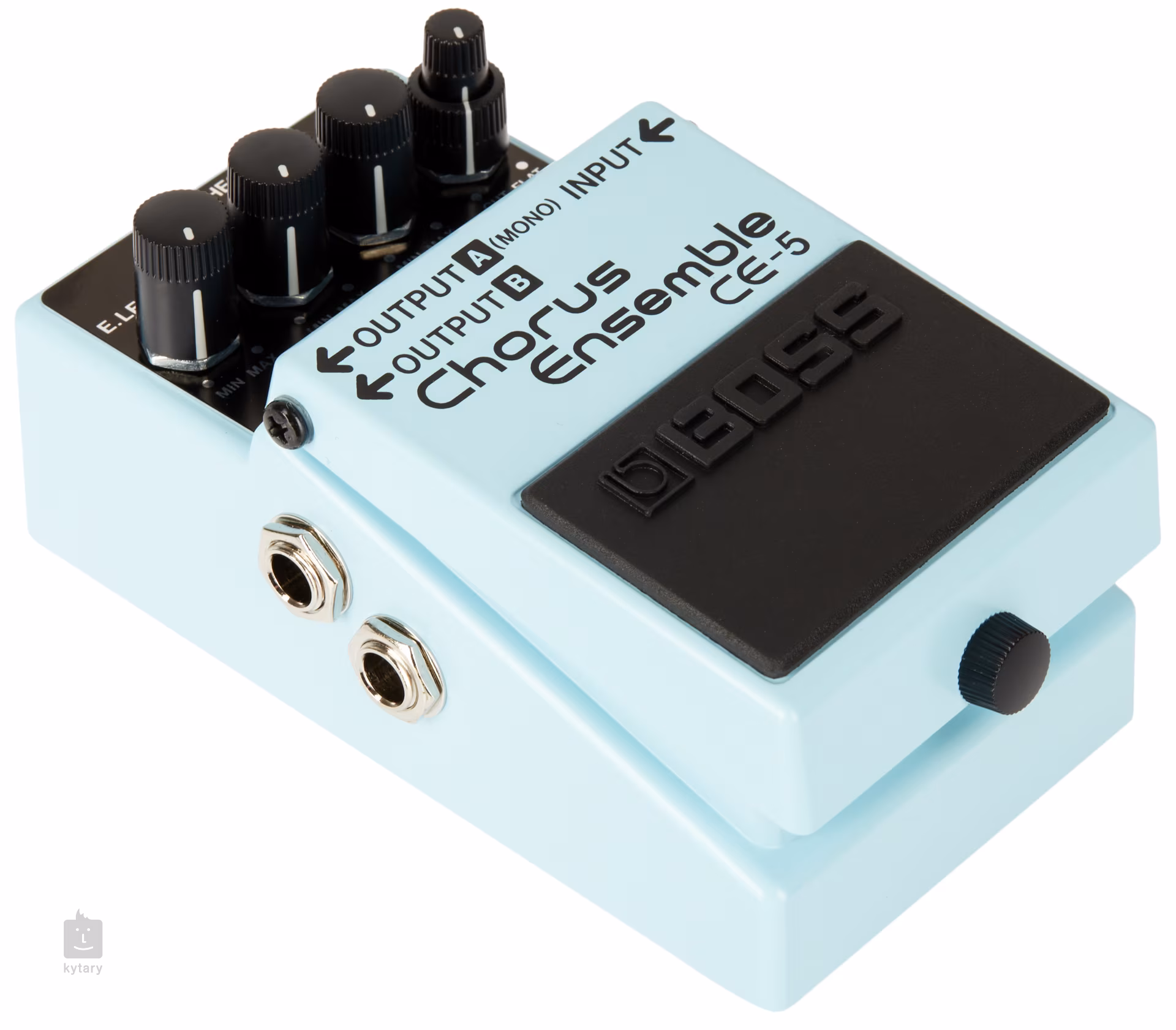 Boss CE-5 Chorus Ensemble je kompaktný chorus pedál, ktorý pokrýva široké frekvenčné spektrum vďaka filtrom, ktoré fungujú ako Bass a Treble Cut. Zvyšné ovládacie prvky určujú pomer čistého a chorusového signálu a rýchlosť a hĺbku modulácie efektu. Môžete si tak vybrať medzi širokou škálou chorusových zvukov - od jemných cez expresívne s typicky metalickým zafarbením až po čisté a úderné stereo efekty. Na rozdiel od mnohých iných chorus pedálov je krabička, ideálne pri nastavení filtrov na Flat, skvelá aj s už skresleným signálom (silné skreslenie), kde aj pri maximálnej modulácii zostáva tón gitary muzikálny.