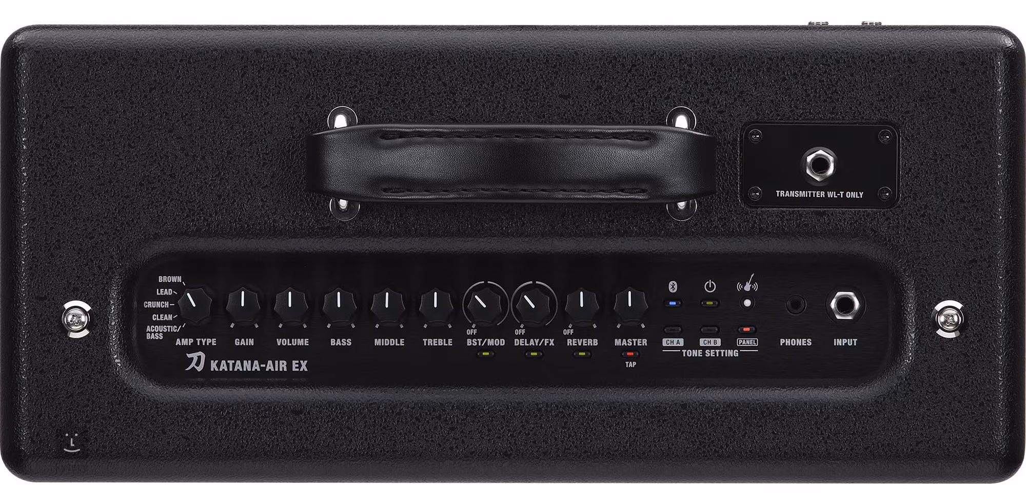 Amp Type, Gain, Volume, Bass, Middle, Treble, BST/MOD, Delay/FX, Reverb, Master, CH A, CH B, Panel, Bluetooth