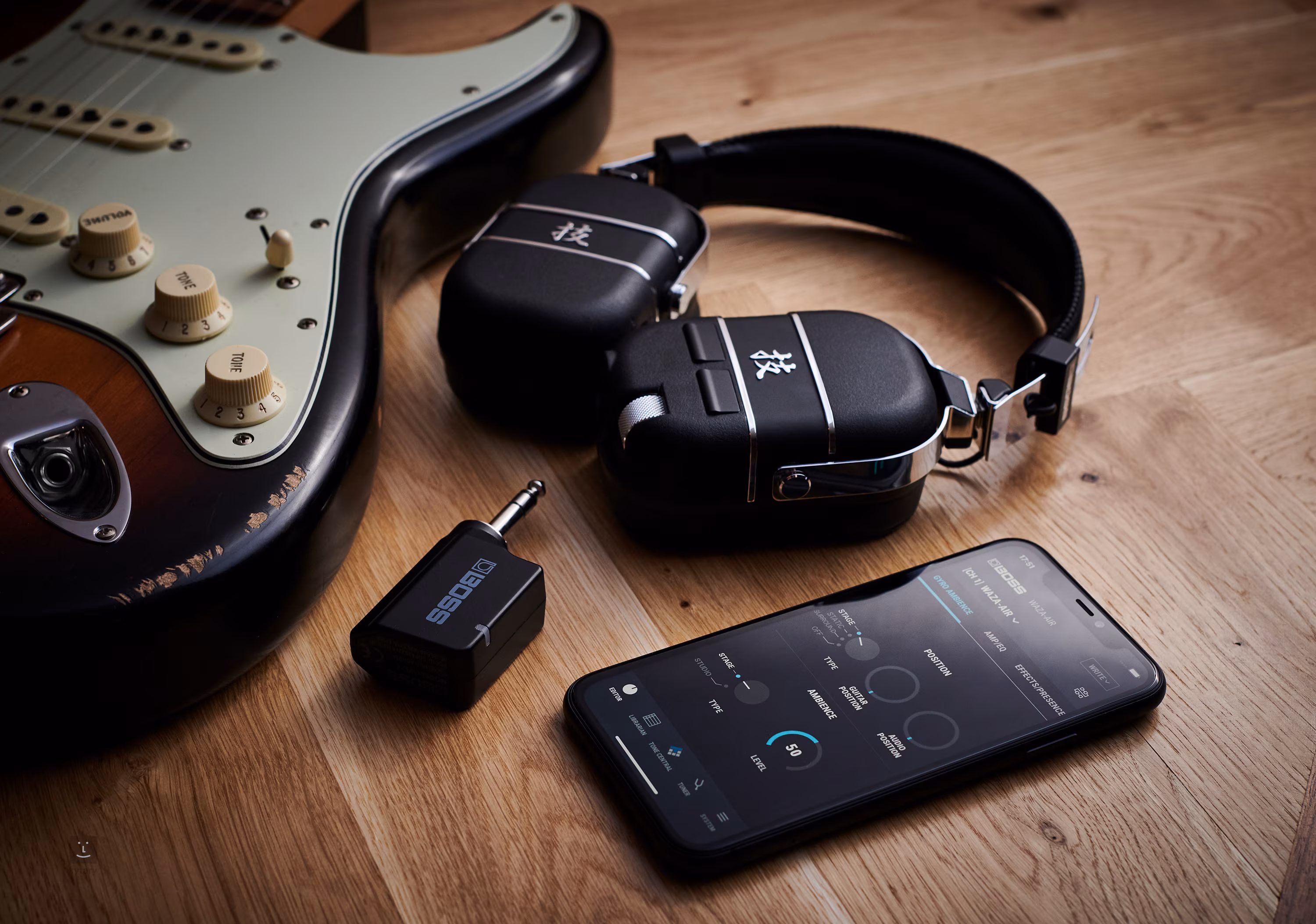 Waza-Air ponúka tóny a ovládacie prvky odvodené od profesionálnych zosilňovačov Katana, vrátane kompletnej prispôsobiteľnosti a množstva presetov dostupných prostredníctvom bezplatnej aplikácie BOSS Tone Studio. Päť rôznych typov zosilňovačov ponúka tóny od čistej klasiky až po vysoký gain, ako aj typ s plným rozsahom, ktorý je ideálny pre basové alebo elektroakustické gitary. K dispozícii je tiež viac ako 50 typov efektov vrátane modulačných efektov, Delay a Reverb - všetky sú prispôsobené jedinečnému priestorovému zážitku, ktorý Waza-Air ponúka. Vďaka šiestim zabudovaným pamätiam si môžete uložiť svoje obľúbené nastavenia a vyvolávať ich stlačením jediného tlačidla.