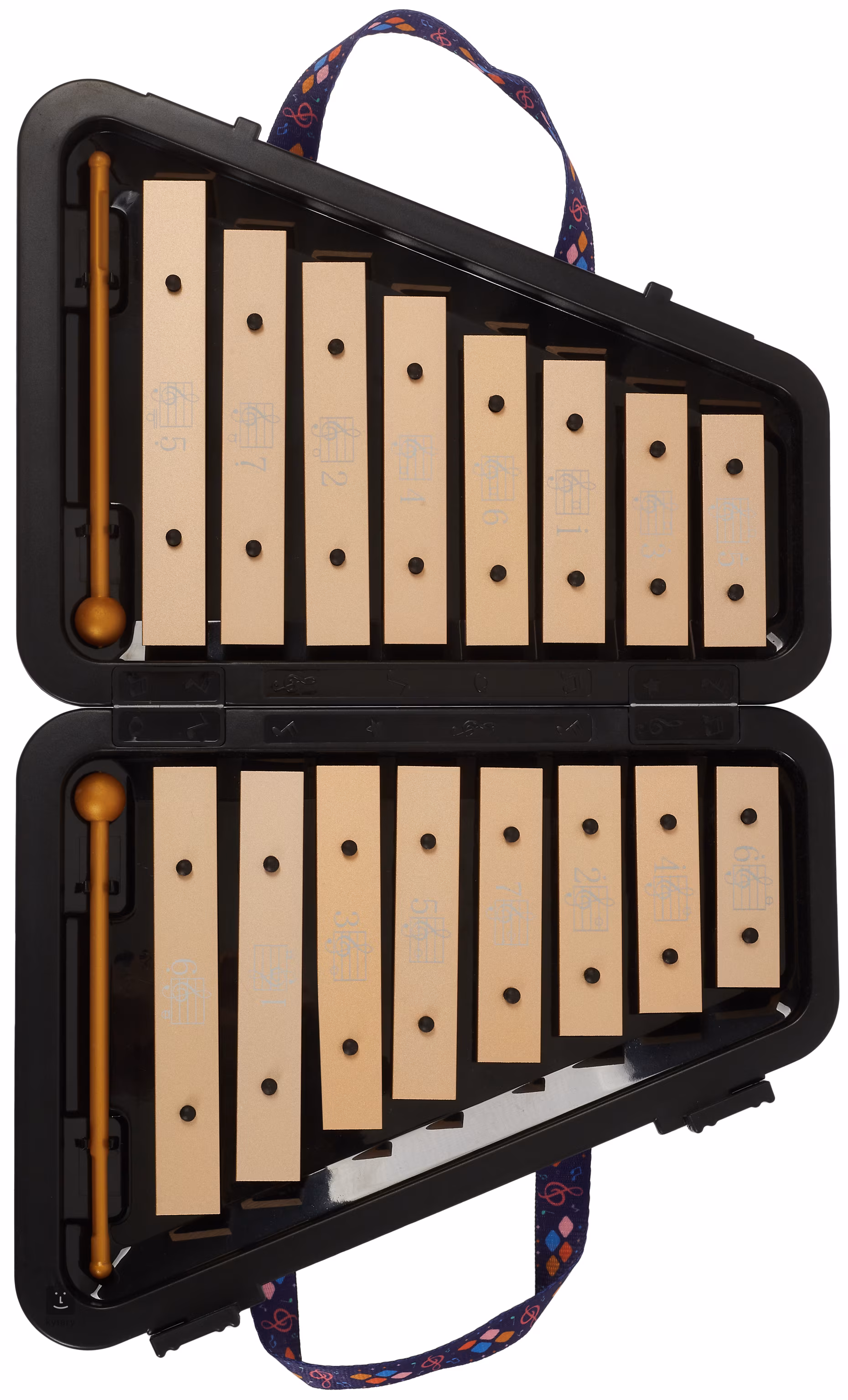 Štýlový xylofón zo série CX od spoločnosti Byla. Je vyrobený z hliníka a dômyselne vložený do prenosného puzdra, takže ho stačí rozbaliť a môžete začať hrať. Súčasťou balenia je, samozrejme, aj pár paličiek, na ktoré sa v balení tiež nájde miesto.