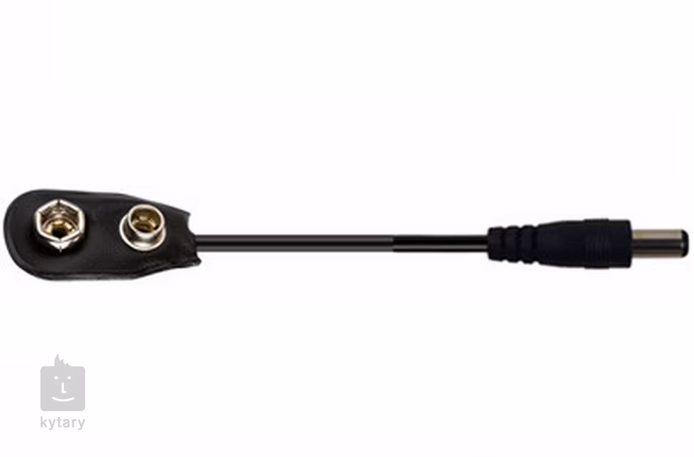 Redukcia na napájanie gitarových efektov pomocou 9V batérií. Na jednej strane je konektor na pripojenie batérie, na druhej strane je konektor 2,1 x 5,5 mm, ktorý je rovnaký ako pri bežných napájacích adaptéroch.