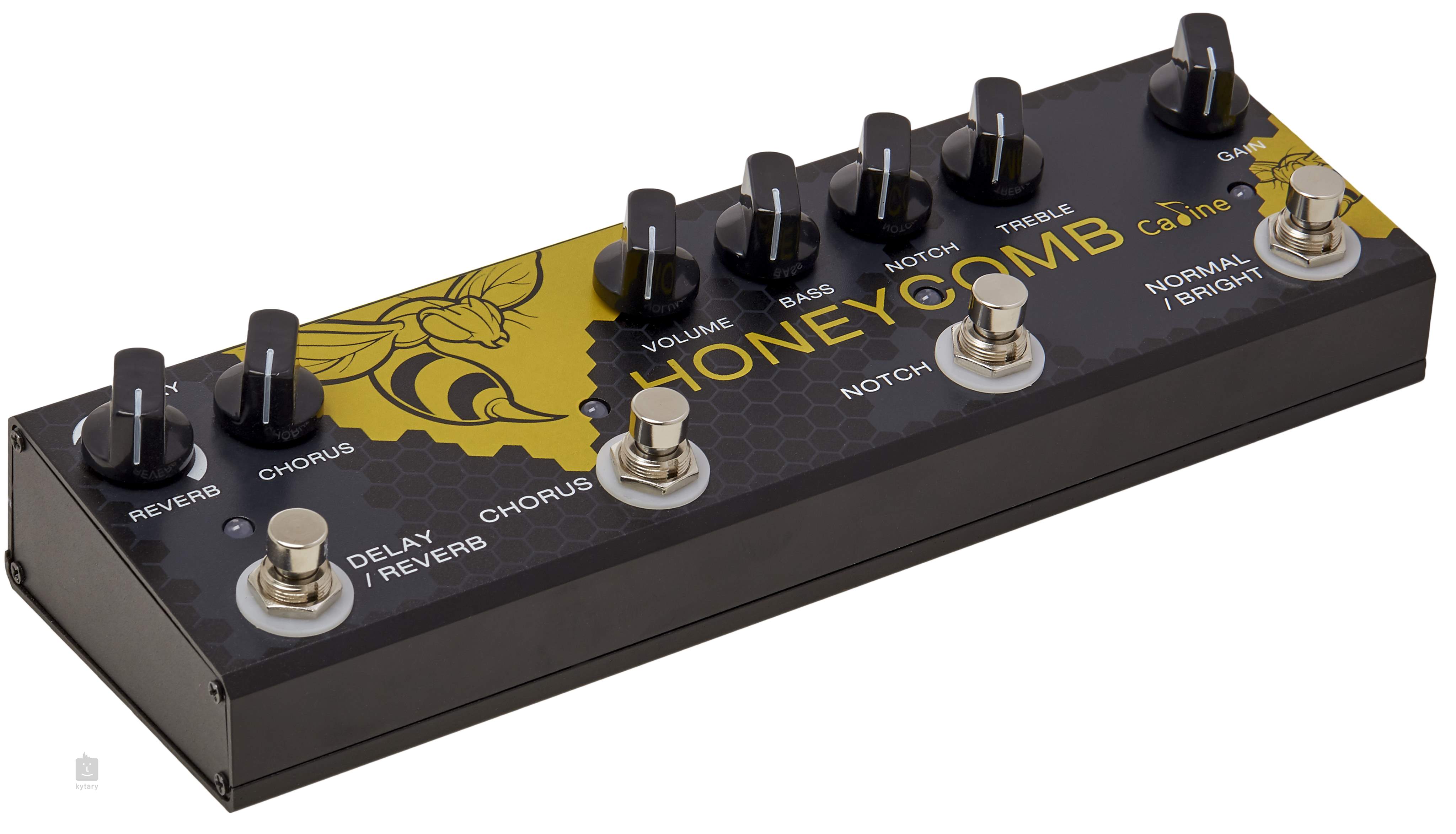 Caline CP-48 Honeycomb je multiefekt pre akustické nástroje/gitary od čínskej značky Caline, ktorý ponúka tri analógové efekty ako Reverb, Delay a Chorus. Na prednom paneli nájdete okrem dvoch prepínačov a ovládačov Reverb a Chorus aj dvojpásmový EQ (Bass, Treble), potenciometre Volume a Gain, funkciu Notch na potlačenie efektu spätnej väzby (častý jav pri basových nástrojoch) a prepínač Normal/Bright, kde jednoduchým stlačením prepínača rozjasníte zvuk vašej gitary, t. j. režim Bright funguje ako Treble Boost.