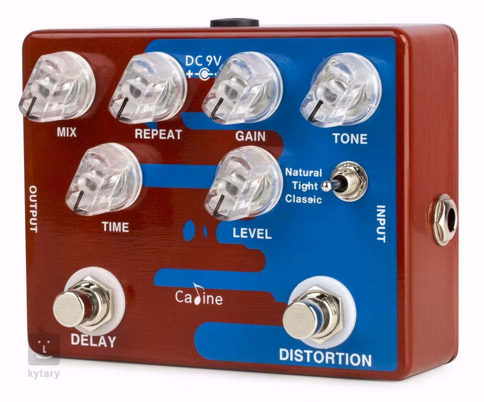 Gitarový pedál CP-68 od čínskej značky Caline ponúka dva samostatné efekty Delay a Distortion v jednom kompaktnom tele. Sekcia Delay ponúka digitálny delay s maximálnym časom oneskorenia zvuku 600 ms a štandardné možnosti editácie v podobe troch ovládacích prvkov, ktoré určujú pomer čistého a spracovaného signálu, počet opakovaní a rýchlosť delay efektu. Sekcia Distortion ponúka nielen plnohodnotné štandardné ovládacie prvky (výstupná hlasitosť, skreslenie a EQ), ale aj tri prevádzkové režimy (Natural, Tight, Classic), takže charakter dravého skreslenia môžete prispôsobiť svojej rockovejšej povahe alebo naopak duši čistého metalistu.