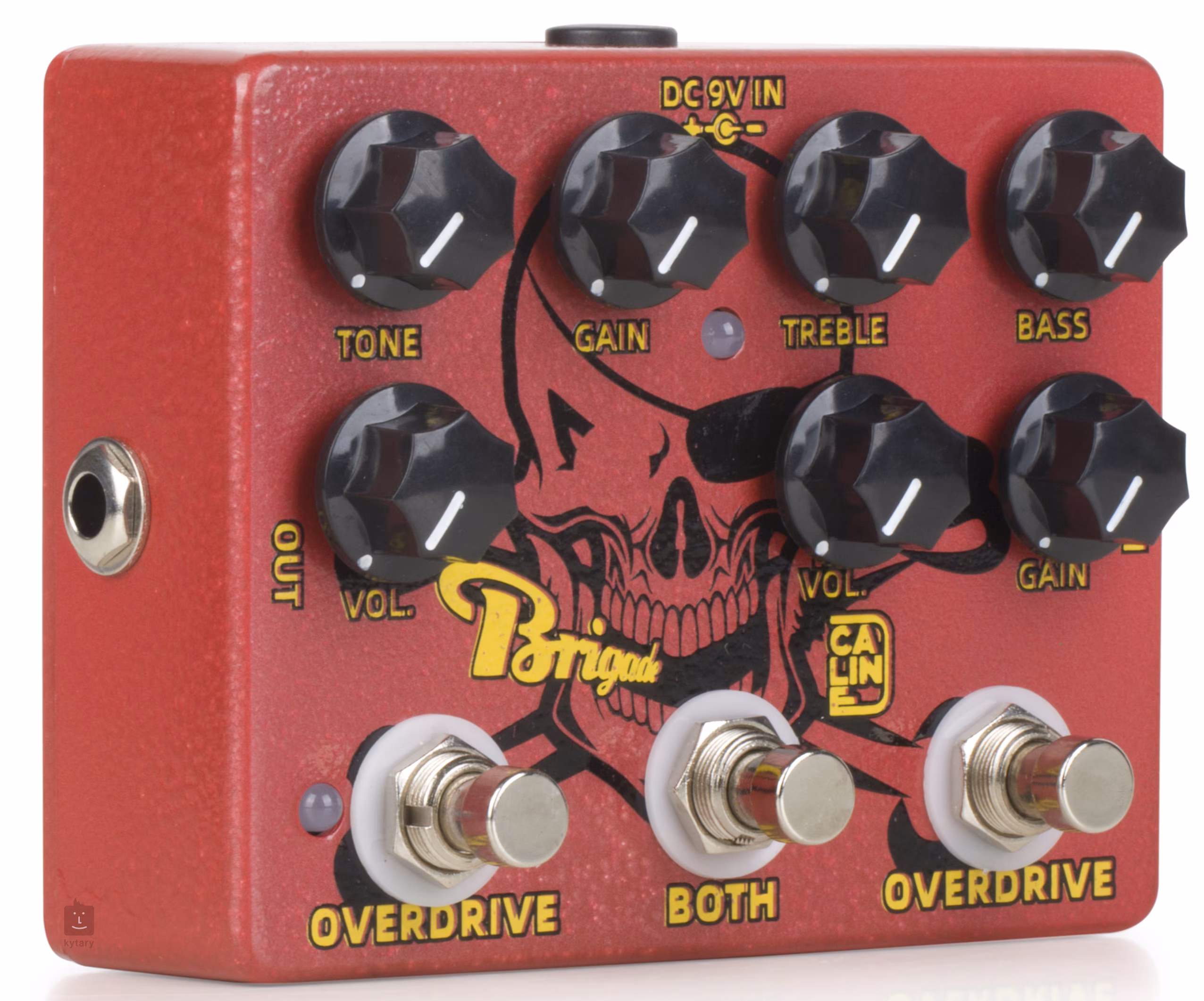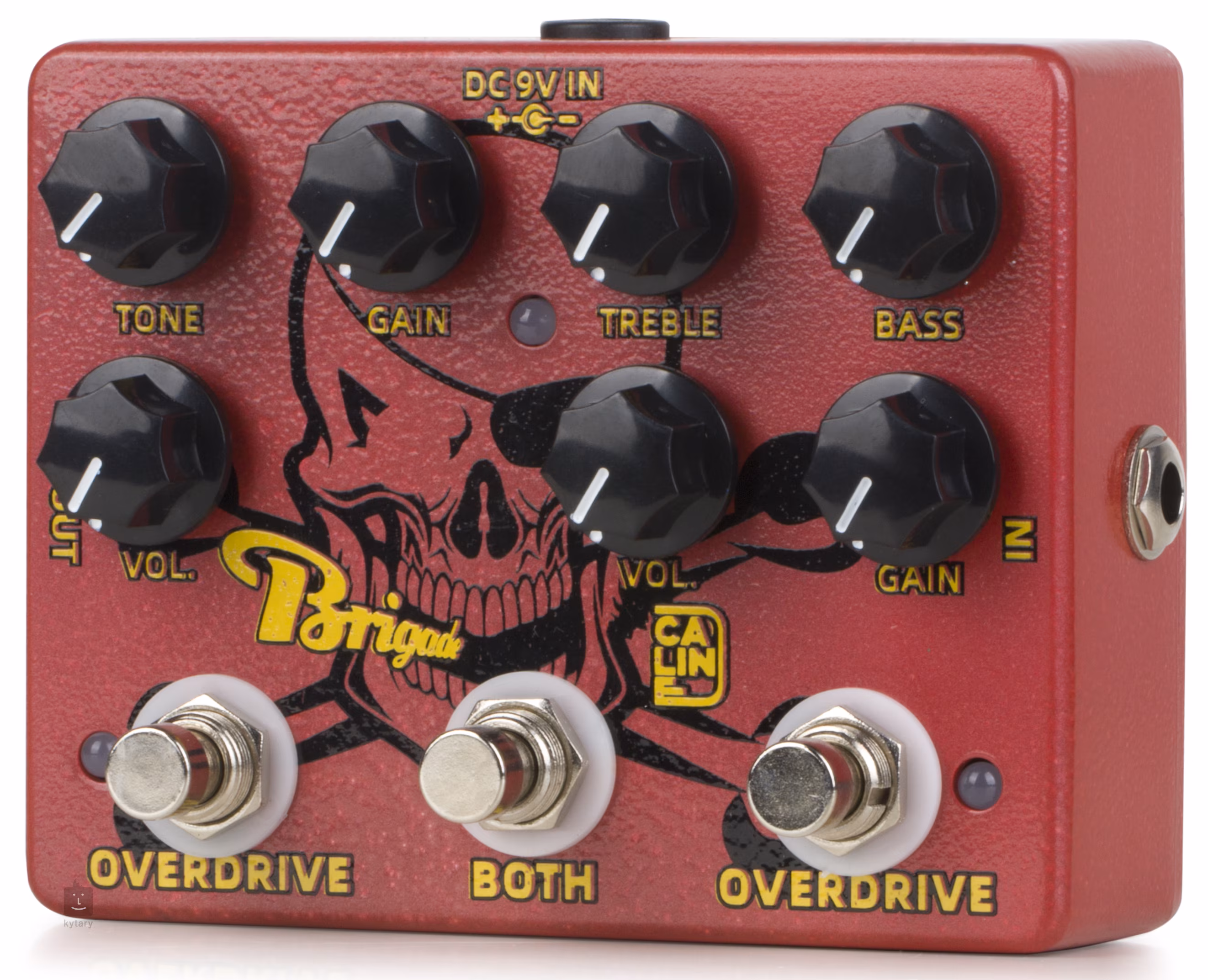 Pedálový efekt Caline Brigade kombinuje dve konštrukcie overdrive boxov Caline v jednom šasi - transparentný lo-gain CP-12 Pure Sky Overdrive a CP-49 Midlander inšpirovaný legendárnym boxom Tube Screamer OD. Pravú sekciu tak môžete použiť ako čistý boost/EQ a obvod "Screamer" ako "dirt" pedál na pridanie väčšieho skreslenia do čistého alebo už skresleného zvuku. Obe sekcie môžete používať samostatne alebo súčasne.