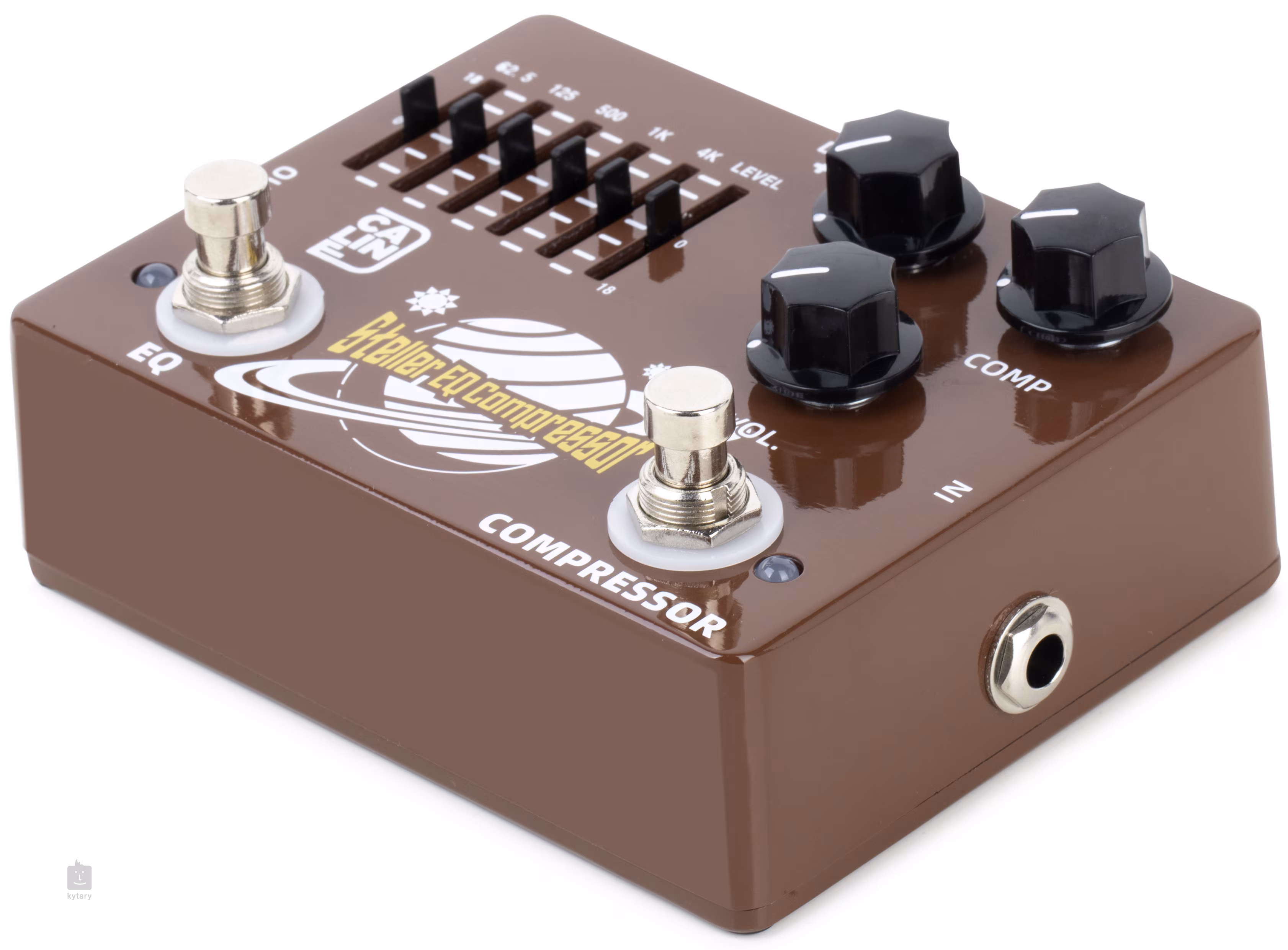 Pedálový efekt Stella EQ Compressor kombinuje šesťpásmový basový ekvalizér Caline CP-73 s tlakovým kompresorom CP-47 v jednom šasi.