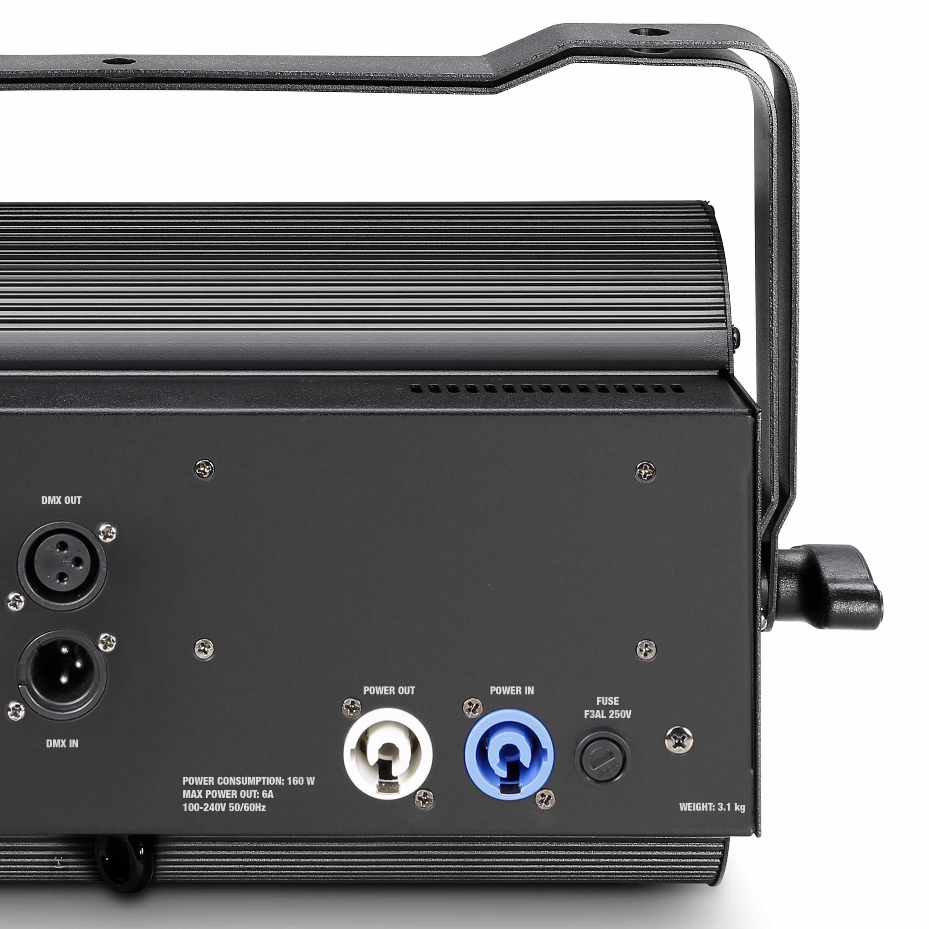 Na ovládanie môžete použiť štandardný protokol DMX512, programy ovládané zvukom alebo režim Master/Slave. Na manuálne nastavenie slúži prehľadný ovládací panel s LED displejom a tlačidlami. Zariadenie je vybavené konektormi DMX a napájacími konektormi PowerCon. Pevná kovová konštrukcia zaručuje odolnosť a dlhú životnosť výrobku.
