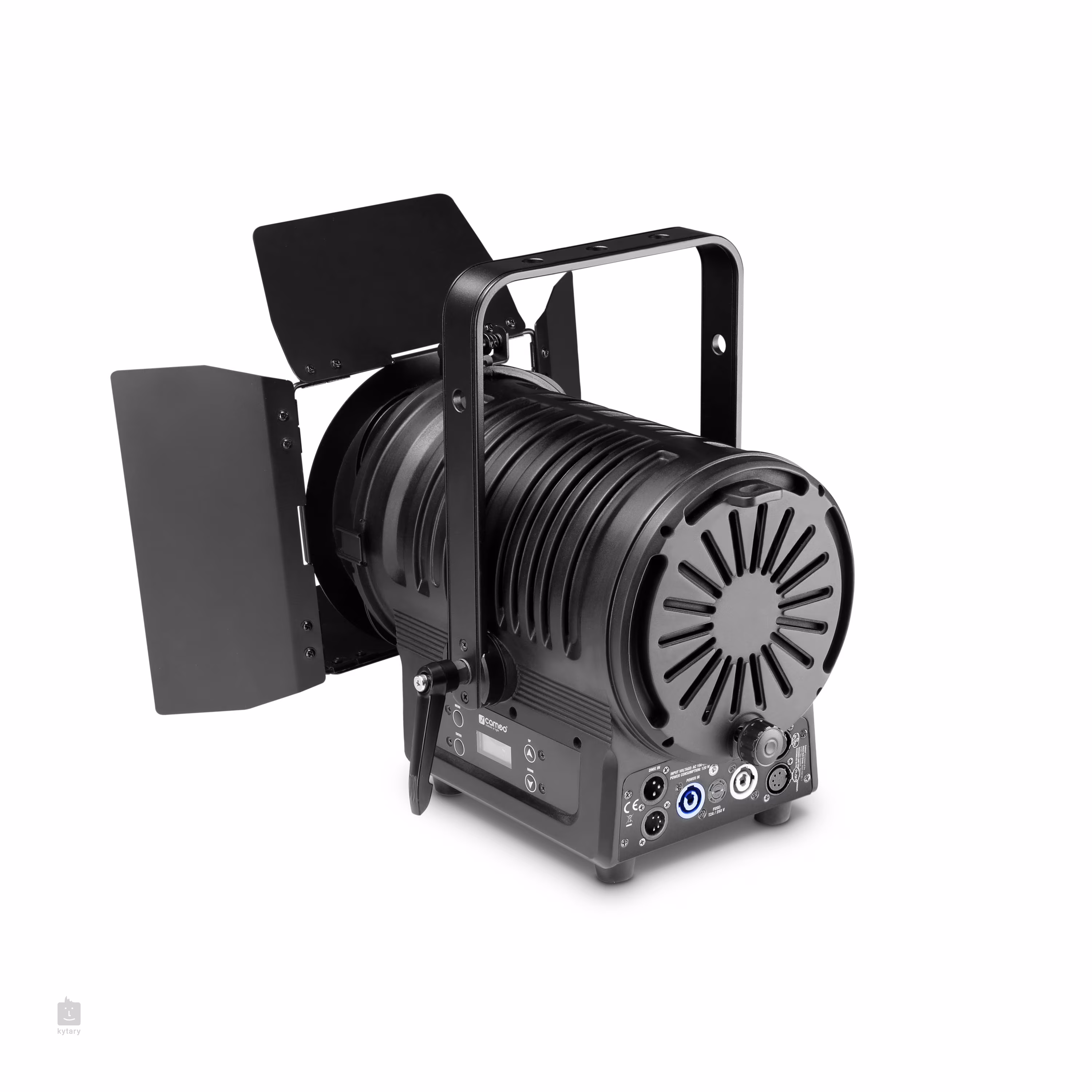 Reflektor je vybavený manuálnym zoomom na nastavenie uhla vyžarovania od 14° do 38°. Svetelný lúč môžete ďalej nastaviť pomocou smerových dvierok, ktoré sú súčasťou balenia. Ak potrebujete farebné osvetlenie, poslúži vám priložený rámik na vloženie farebných filtrov. Vďaka nastaviteľnej obnovovacej frekvencii (650 Hz, 1530 Hz, 3600 Hz, 25 000 Hz) sa môžete spoľahnúť, že reflektor bude skvele fungovať aj v situáciách pod kamerou, keď potrebujete eliminovať nežiaduce blikanie svetla. Môžete si ho teda bez obáv vziať do filmového alebo televízneho štúdia.