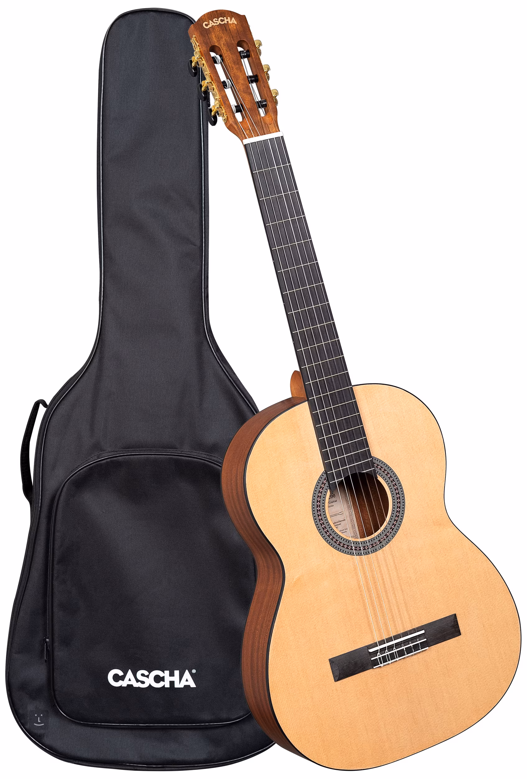 Detská klasická gitara Cascha Stage Series vo veľkosti 3/4 je cenovo dostupný nástroj vhodný pre úplných začiatočníkov. Je vybavená laminovaným smrekovým a mahagónovým telom, mahagónovým krkom, hmatníkom a kobylkou z purpurového srdca (amarant) a štýlovým spracovaním. Nástroj sa dodáva v polstrovanom gig bagu.