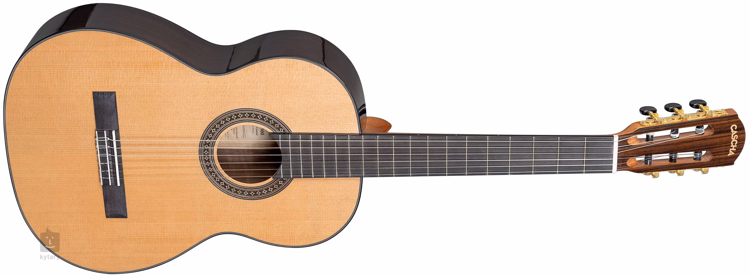 Klasická gitara Cascha Performer Series je cenovo dostupný nástroj vhodný pre začiatočníkov, ktorý materiálmi a spracovaním prevyšuje základné "entry level" nástroje. Predná doska gitary je vyrobená z laminovaného smrekového dreva, zatiaľ čo zadná doska a luby sú z laminovaného palisandrového dreva. K mahagónovému krku je prilepený hmatník z dreva purpleheart/amarant s osemnástimi pražcami.