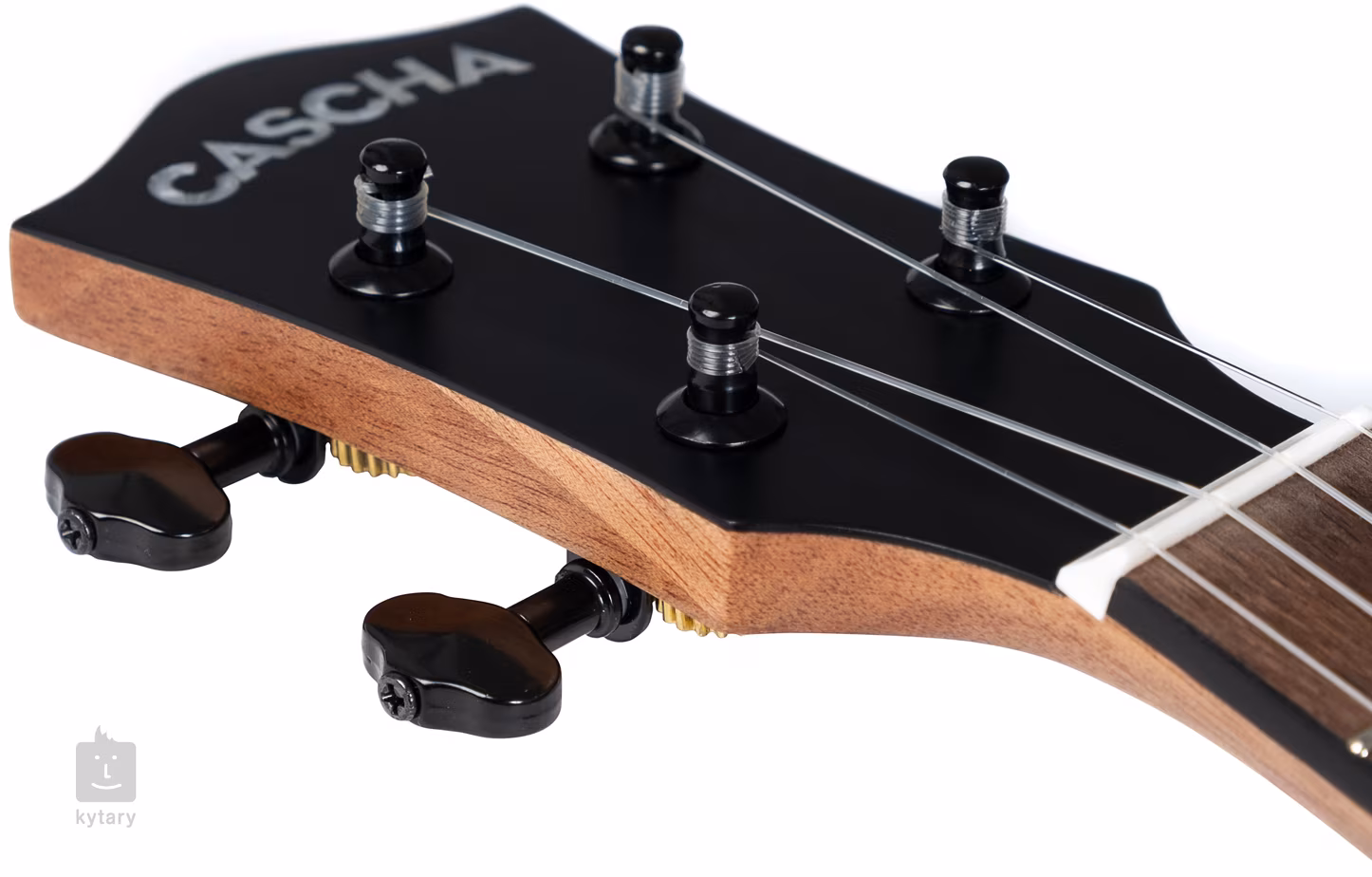 Telo ukulele Cascha CUCZW1 Concert Zebra Wood je vyrobené z laminovaného exotického zebrového dreva, ktoré nástroju dodáva ušľachtilý vzhľad a teplý plný zvuk. Ku krku z okoumé je prilepený orechový hmatník osadený osemnástimi pražcami. Cez kostený hmatník sú v otvorených gitarových mechanikách a orechovom hmatníku upevnené firemné uhlíkové struny. Pekné spracovanie podčiarkuje čierna obvodová väzba, čierny hardvér a matná povrchová úprava.