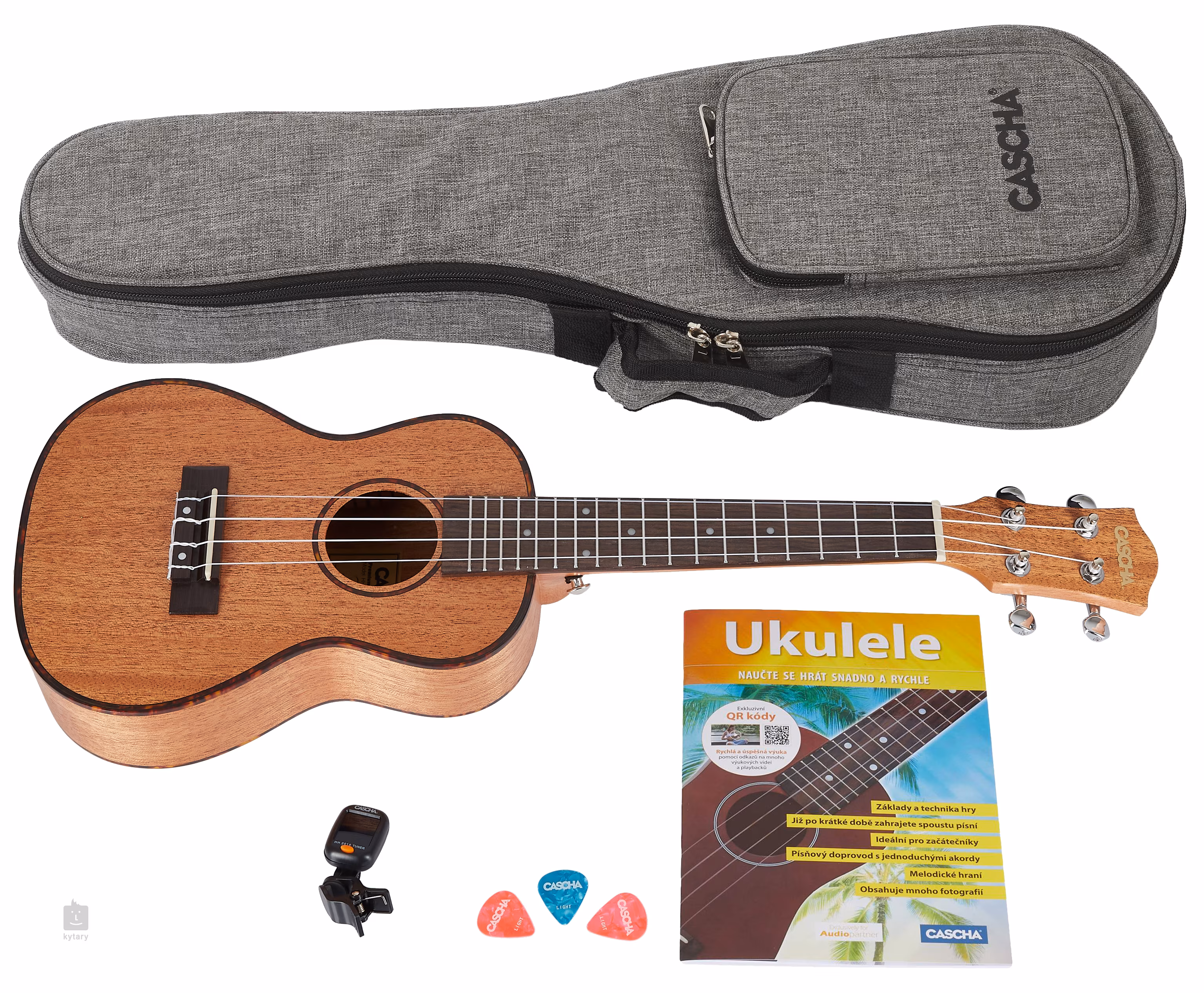 Koncertné ukulele Cascha Premium je cenovo dostupný nástroj, ktorý poteší deti aj dospelých. Spolu s týmto ukulele dostanete praktické polstrované puzdro (hrúbka polstrovania 5 mm), tri trsátka, školu hry na ukulele v českom jazyku a klipovú ladičku (na napájanie ladičky je potrebná lítiová batéria CR2032).