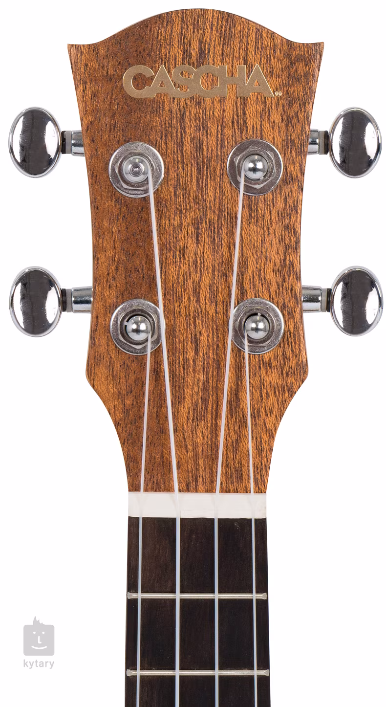 Rezonančná doska sopránového ukulele Cascha HH 2148L Soprano Spruce LH pre ľavorukých hráčov zo série Solid Top je vyrobená z masívneho smrekového dreva, zatiaľ čo zadná doska a luby sú z laminovaného mahagónu. Struny sú uchytené v pochrómovaných mechanikách gitarového typu a palisandrovom hmatníku, ktorý je použitý aj na kobylku ukulele. Pekné spracovanie podčiarkuje rozeta a jazýček so vzorom rybej kosti a čierne obojstranné obvodové lemovanie tela.