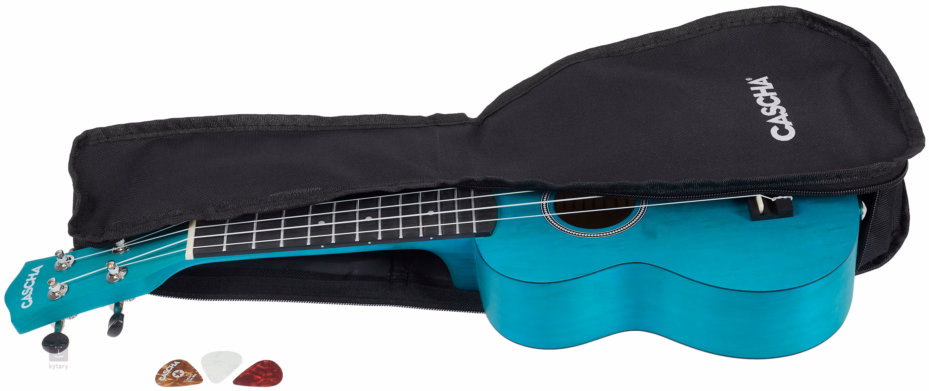 Sopránové ukulele Cascha Blue je cenovo dostupný nástroj vhodný pre deti a úplných začiatočníkov. Spolu s ukulele dostanete praktické puzdro a tri trsátka, takže môžete okamžite vyraziť za zábavou k vode, na skaly, k moru... všade tam, kde to žije.