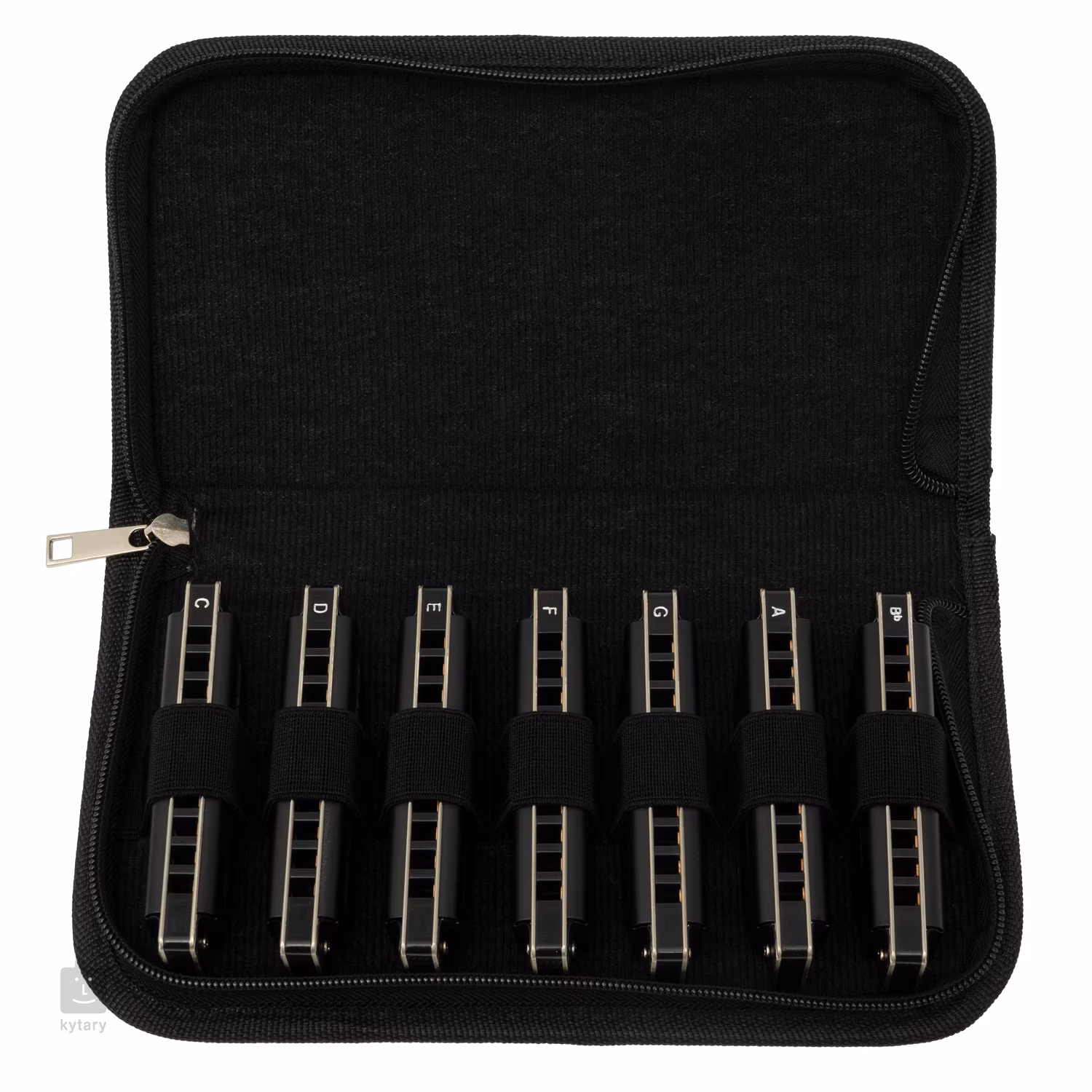 Sada siedmich diatonických harmoník Cascha v ladení C, D, E, F, G, A a H/Bb v praktickom mäkkom puzdre. Diatonické harmoniky Cascha zo série Master Edition sú určené pre skúsených a začínajúcich hudobníkov a všetkých, ktorým sa hodí solídne blues do vrecka. Harmoniky majú plastové telo, čierne kovové kryty a snímače z fosforového bronzu.