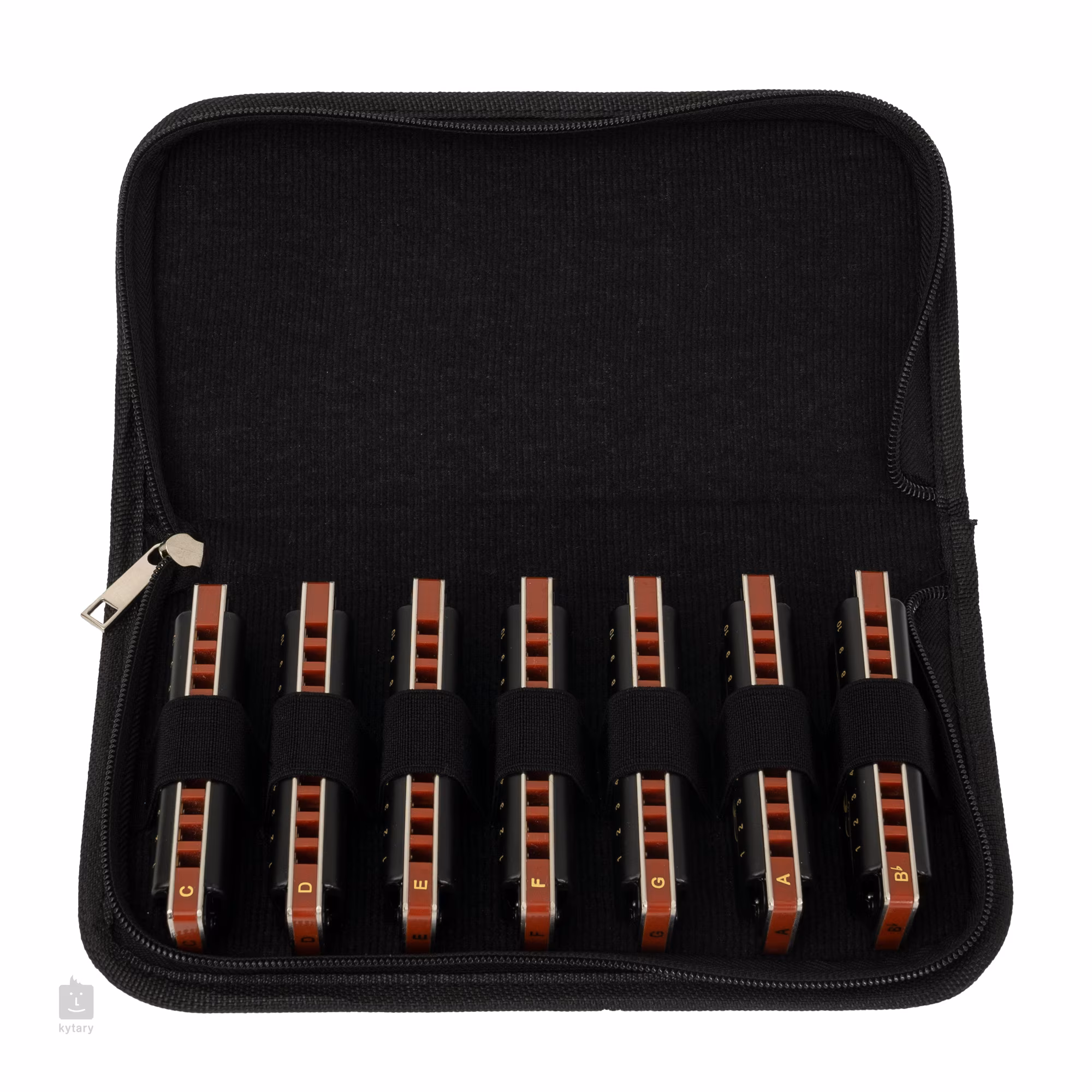 Sada siedmich diatonických harmoník Cascha v ladení C, D, E, F, G, A a H/Bb v praktickom mäkkom puzdre. Diatonické harmoniky Cascha zo série Professional Blues sú určené pre skúsených a začínajúcich hudobníkov a pre všetkých, ktorým sa hodí lacnejšia bluesová harmonika do vrecka. Harmoniky majú plastové telo medenej farby, mosadzné hlavy a matné čierne kryty.